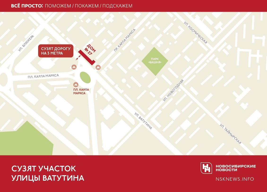 На три метра сузили улицу рядом с площадью Маркса в Новосибирске
