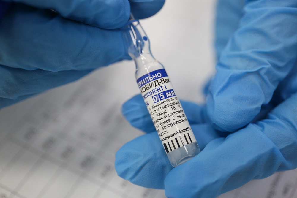 Здесь предлагают вакцинироваться «Спутником V». Для хранения этой вакцины в павильоне есть специальный холодильник.