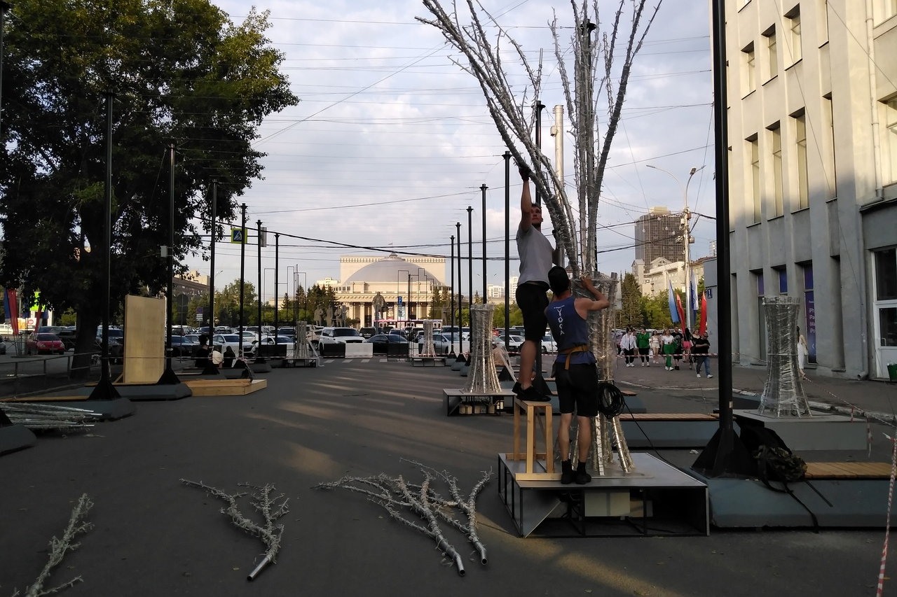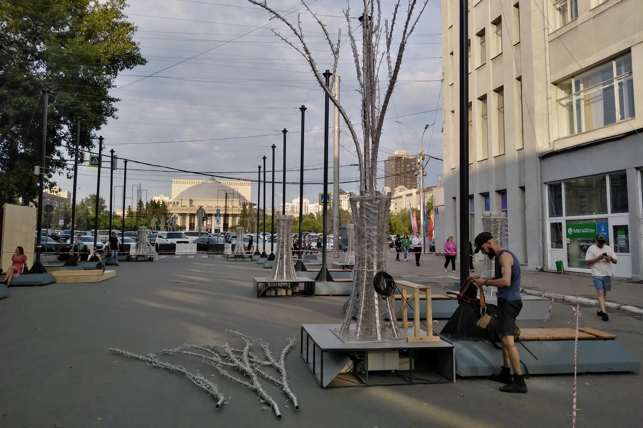 На выходных на улице Ленина в Новосибирске установили светящиеся конструкции в виде деревьев. Они украсят променад к празднованию 130-летия города. Ранее сюда привезли 64 бетонных блока с металлическими столбами и тросами, чтобы смонтировать арки с цветами и яркой иллюминацией.