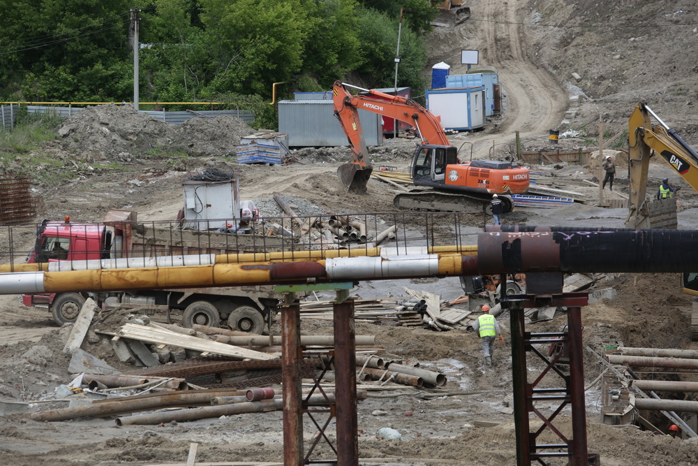 «Перепад высот до русловой части от верха, улицы Галущака — это порядка 15 метров. В связи с тем, что откосы были сформированы при строительстве — не будем бросать камень в огород наших предшественников — не совсем качественно, постоянно осыпались, и какое-то время они держались только за счёт зелёных насаждений, которые здесь были», — объяснил директор Управления заказчика по строительству подземных транспортных сооружений Александр Мысик.