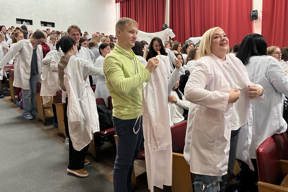 На торжественной церемонии в областной больнице студенты официально надели белые халаты.