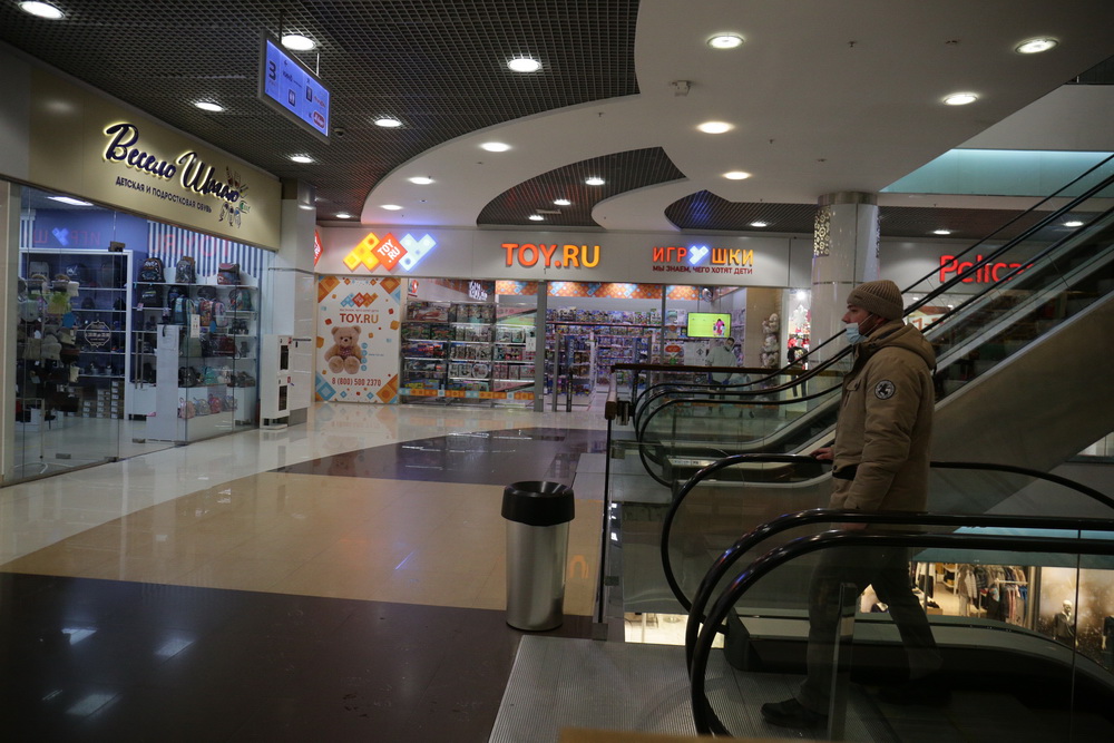 Не разгуляешься: торговый центр на Маркса обезлюдел из-за пандемии