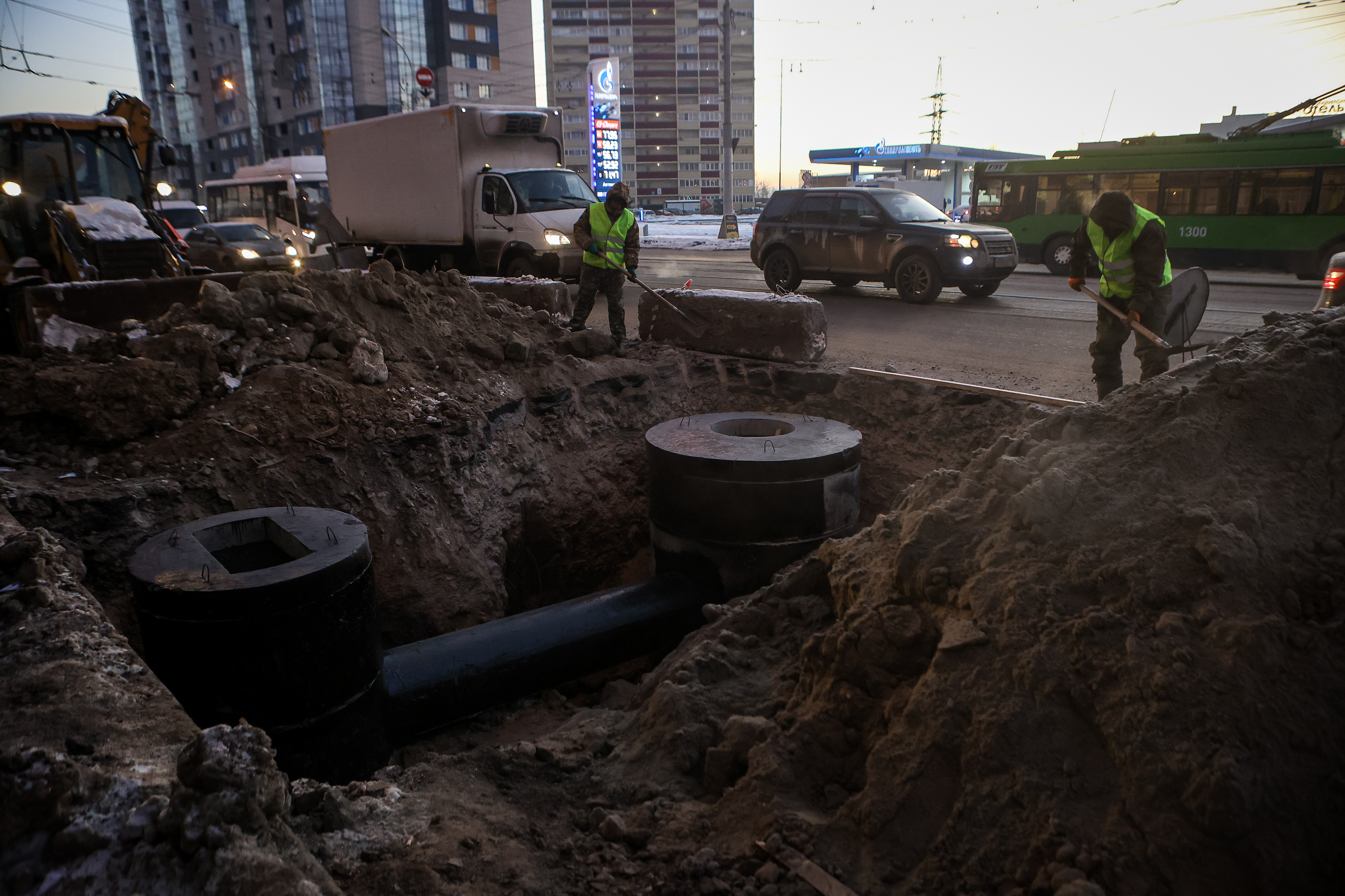 Не выдержавшую ливней канализацию ремонтируют на проспекте Дзержинского