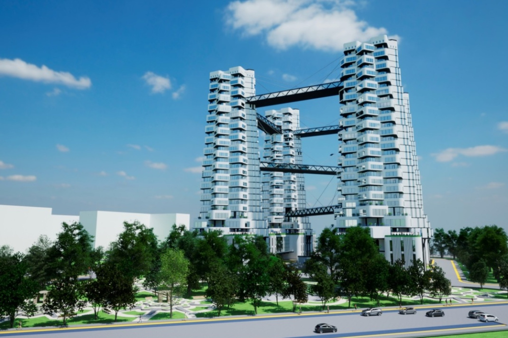 «Такого жилья у нас ещё не строили. По мостам-переходам на седьмом, пятнадцатом и двадцать шестом этаже можно перейти из одной башни в другую», — отметила автор проекта.