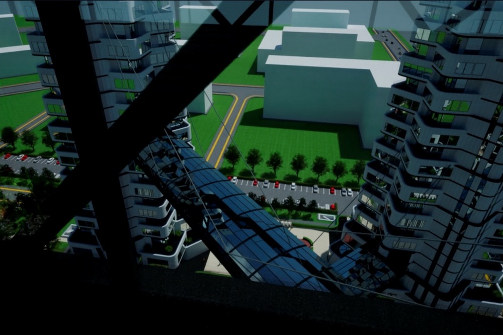 Между ними предусмотрены мосты-переходы. Они связывают башни друг с другом в различных направлениях, а также могут служить видовыми точками.