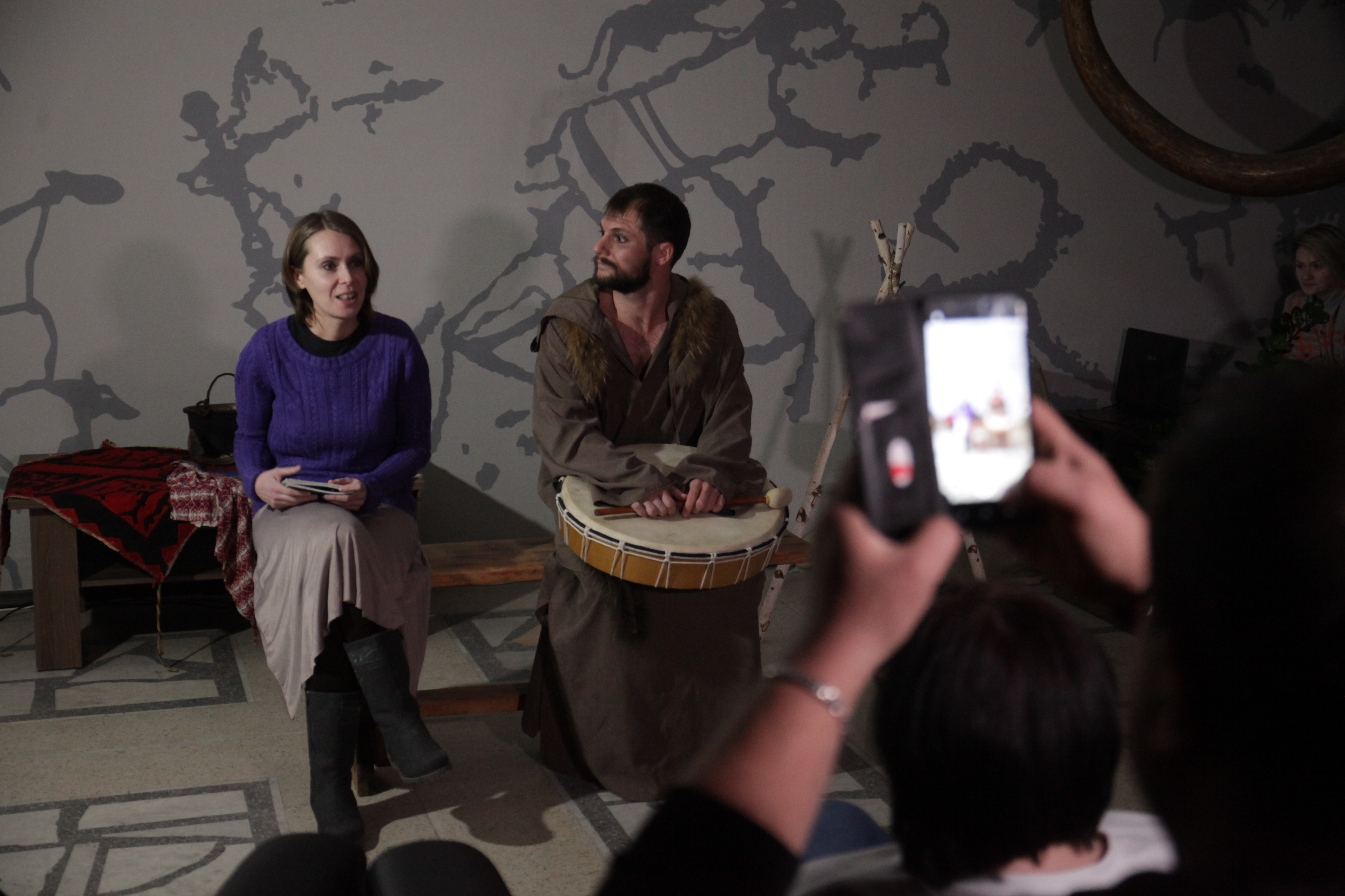 Театр «У мамонта» открыли в Новосибирске среди экспонатов Института археологии и этнографии СО РАН. Каждый месяц актёры будут знакомить зрителей с легендами и мифами народов Сибири и Дальнего Востока. В качестве реквизита используют предметы того времени.