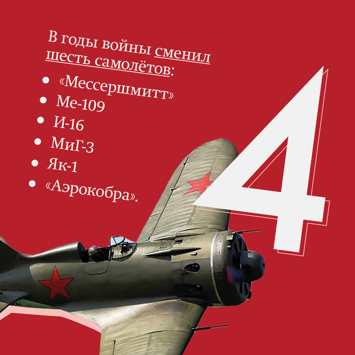 Историки и краеведы спорят о том, какой из боевых самолетов был самым любимым у Покрышкина. Известно, что в годы войны он сменил шесть самолетов: с конца 1941 по весну 1942 года пилотировал трофейный «Mессершмит» Me-109, затем летал на И-16 «Ишачке» и МиГ-3, тем же летом пересел на новый «Як-1». В мемуарах аса описан эпизод, когда он угоняет брошенный МиГ, спасаясь с аэродрома, к которому подступают немцы.