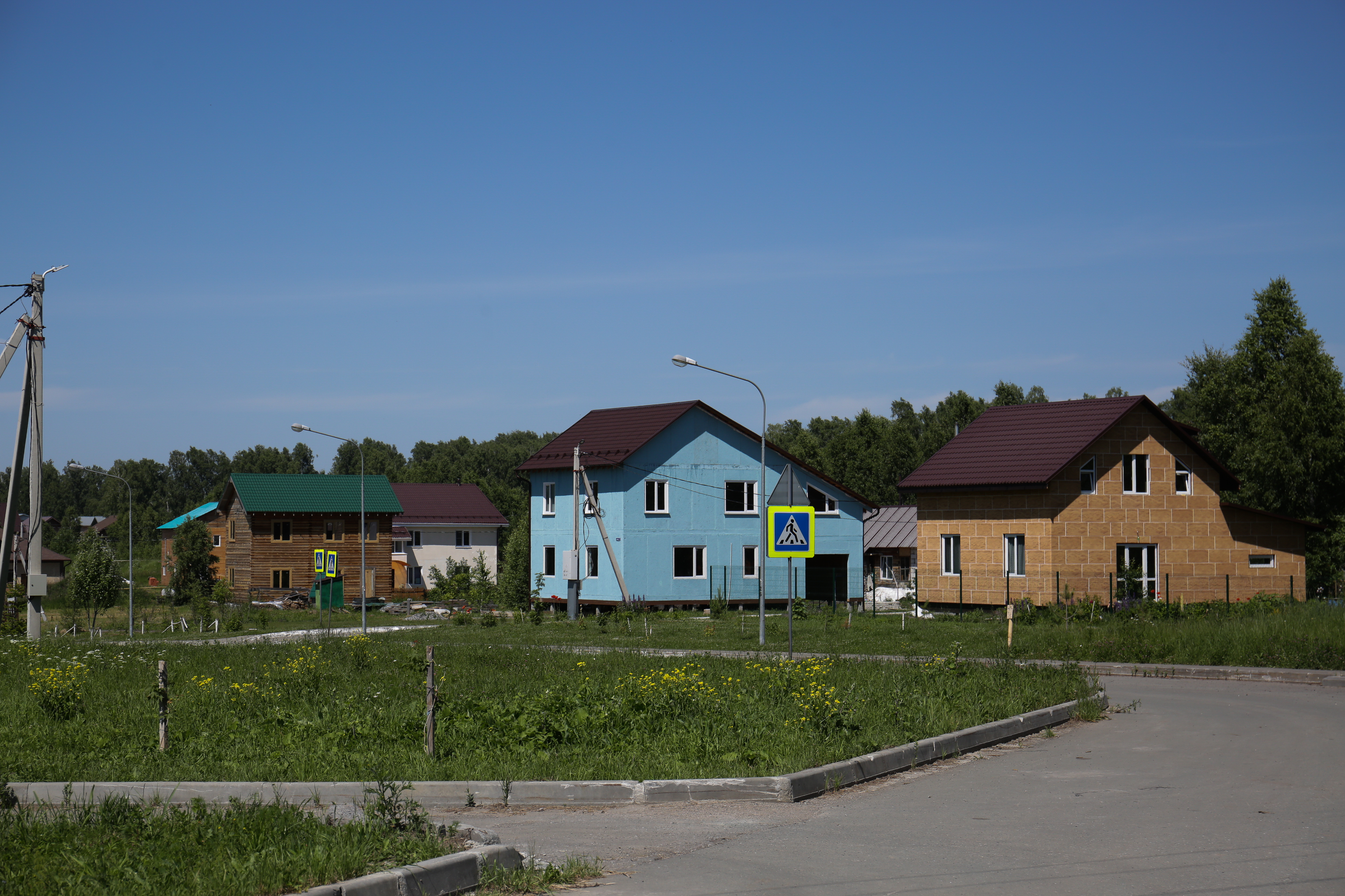 В посёлке нет заборов. Концепция если и предполагала заборы, то небольшие и прозрачные — исключительно чтобы собаки чужие не забегали и кур не ели. «Глухие заборы — это не про нас. Мы не типичный коттеджный посёлок, о котором говорят, что это лежачая девятиэтажка», — подчёркивает Дарья.