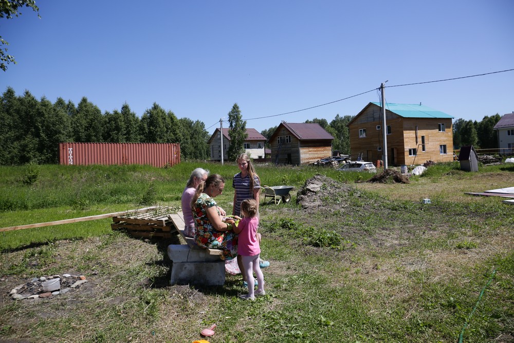Светлана Сальникова — мама пятерых детей. У её старшего сына на следующей неделе свадьба, а младшему только четыре года. «Мы давно знакомы с Татьяной Григорьевной, и мы давно хотели жить на земле, — рассказывает Светлана. — Дом построили по собственному проекту, его площадь — 150 „квадратов“. Хотим ещё пристроить к дому мастерскую и гараж. Все наши соседи многодетные. Все строят с той скоростью, какую позволяют финансы. Когда много детей, есть куда, кроме этого, деньги тратить. Стараемся что-то делать для посёлка, для детей. Приятно, когда не страшно выйти на улицу, когда есть где побегать, поиграть. В этом году мы начали создавать „Аллею памяти“ с портретами наших дедов. Ещё планируем сделать экотропу».
