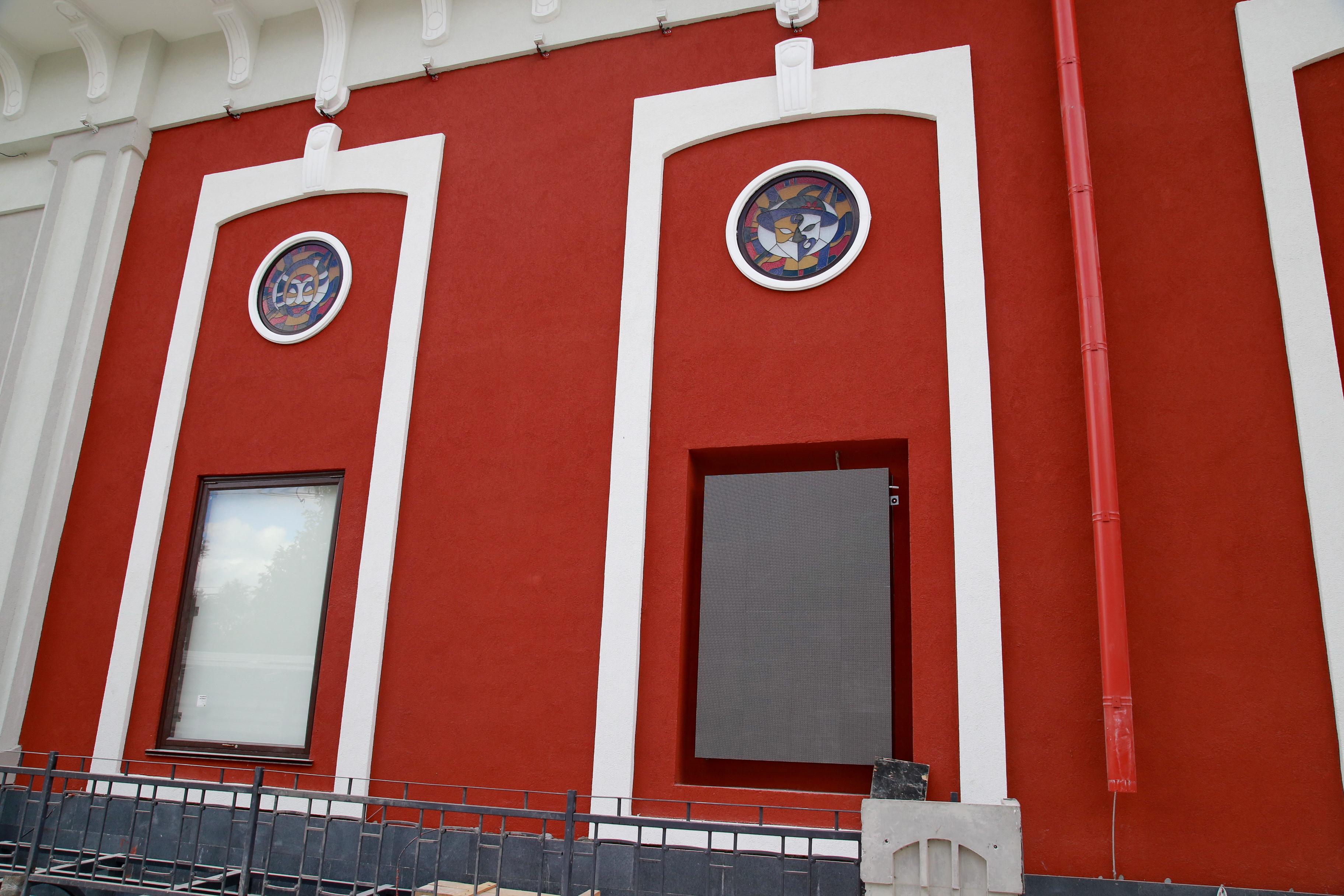Строители завершают отделку фасада театра Сергея Афанасьева. На этой неделе они завершат монтаж подсветки и здание обретёт законченный вид.