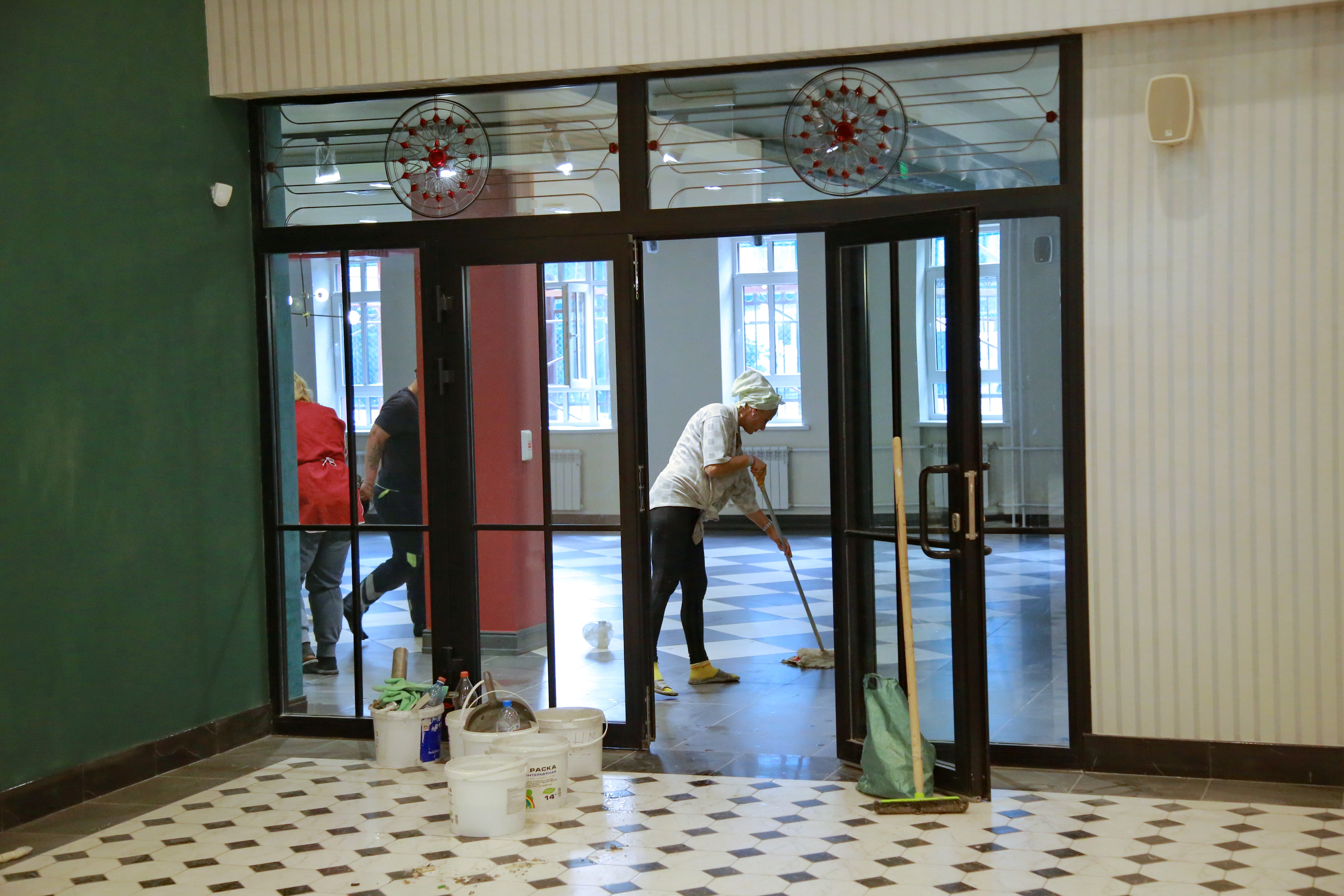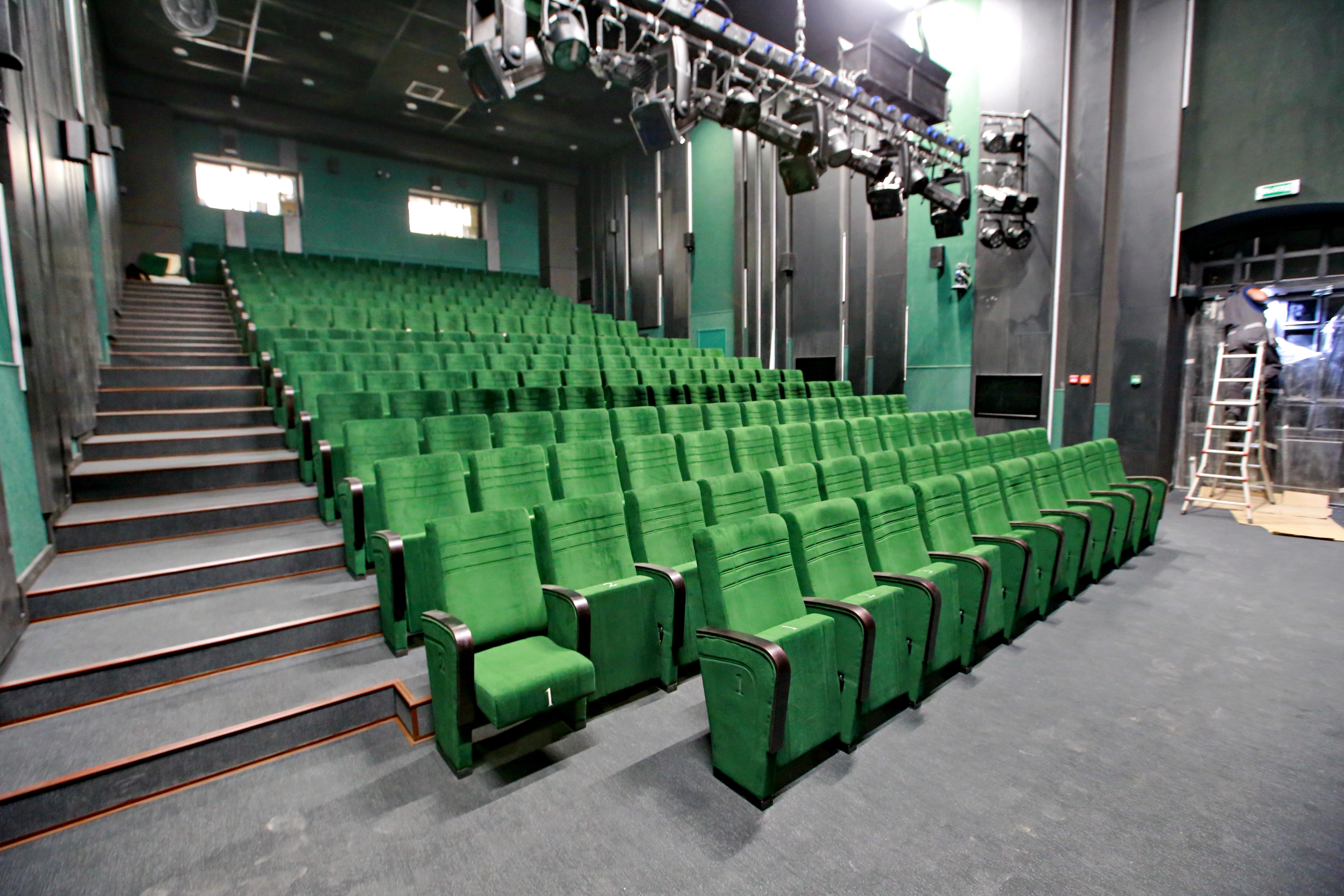 Внутри всё также готово к переезду актёрской труппы. В зрительном зале установили зрительские кресла, смонтировали сценическое оборудование.