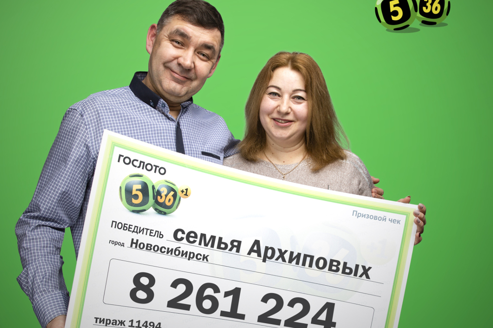 Житель Новосибирска Валерий Архипов приехал в лотерейный центр вместе с супругой, чтобы оформить крупный выигрыш. В январе новосибирец принял участие в 11 494-м тираже «Гослото „5 из 36“» и выиграл 8 261 224 рубля, сообщили в пресс-службе «Столото».