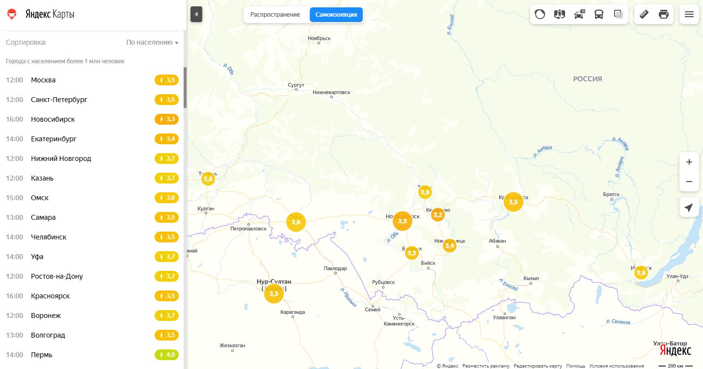 Об этом свидетельствуют данные Яндекс.Карт по состоянию на 11 апреля. В городах с населением свыше 1 млн человек лучше всего самоизоляцию соблюдают жители Перми. В Новосибирске на улицах более многолюдно, чем в Москве и Санкт-Петербурге.