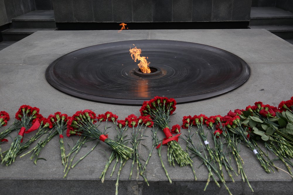 В сквере Славы установлен памятник Единству фронта и тыла. Он символизирует то, что порой на заводах люди жертвовали собой не меньше, чем в бою. На одной плите — номера сибирских дивизий. На другой — названия заводов нашего города. По одним только надписям видно, что выпускалось огромное количество наименований продукции — от сёдел и сапог до боевых самолётов. Кстати, истребителей Як в 1944 году выпускали по нескольку десятков в день. Это как раз полковой комплект.