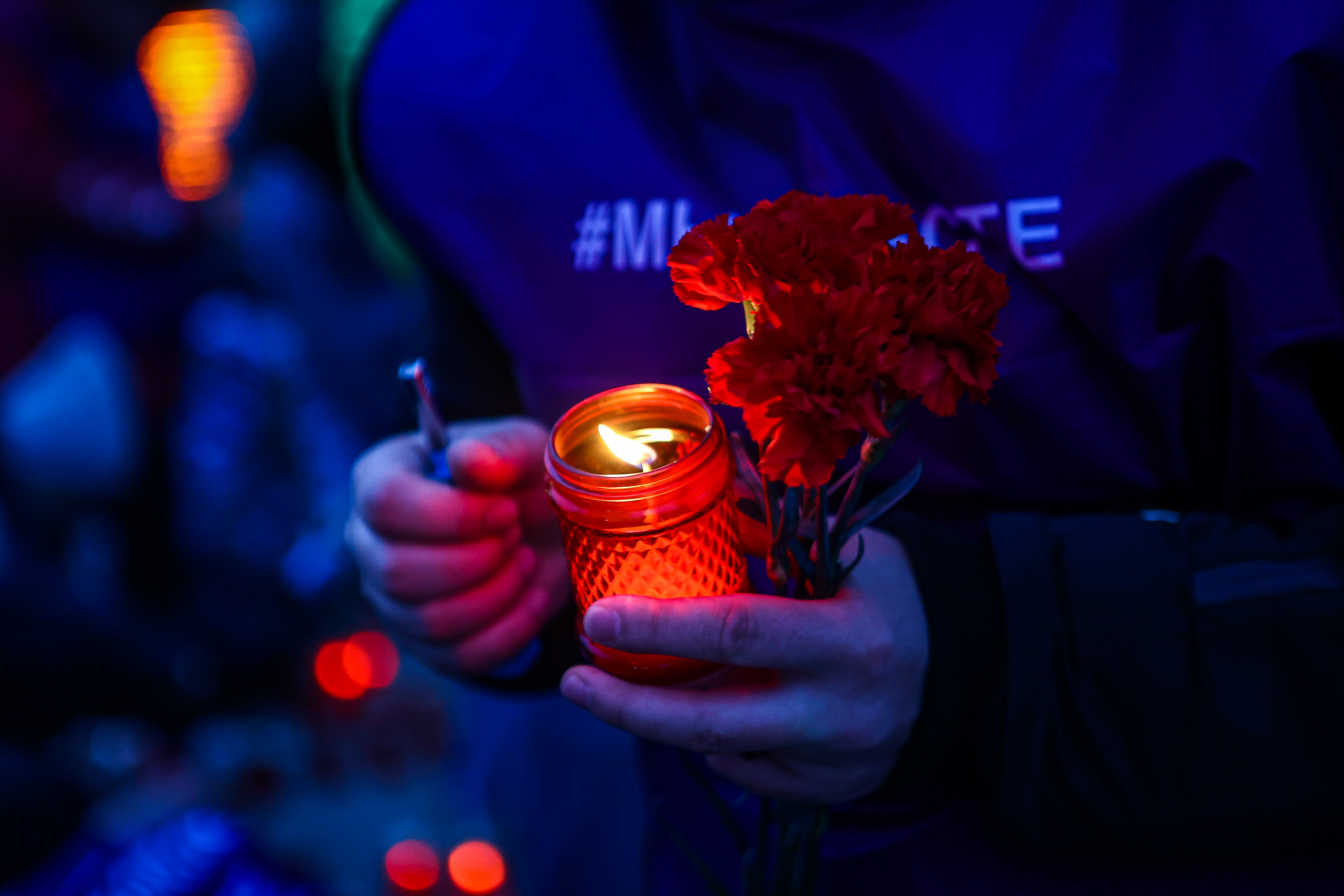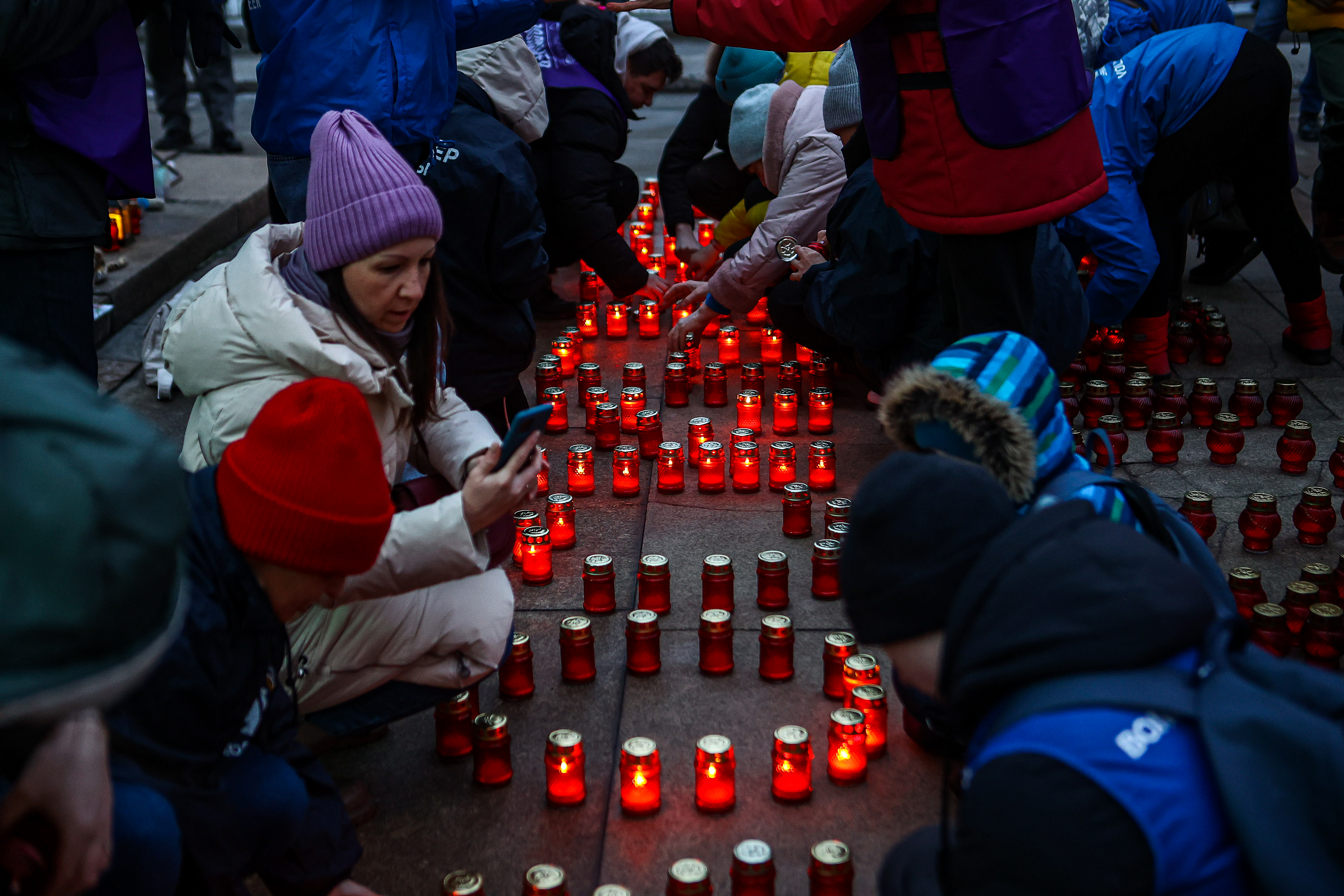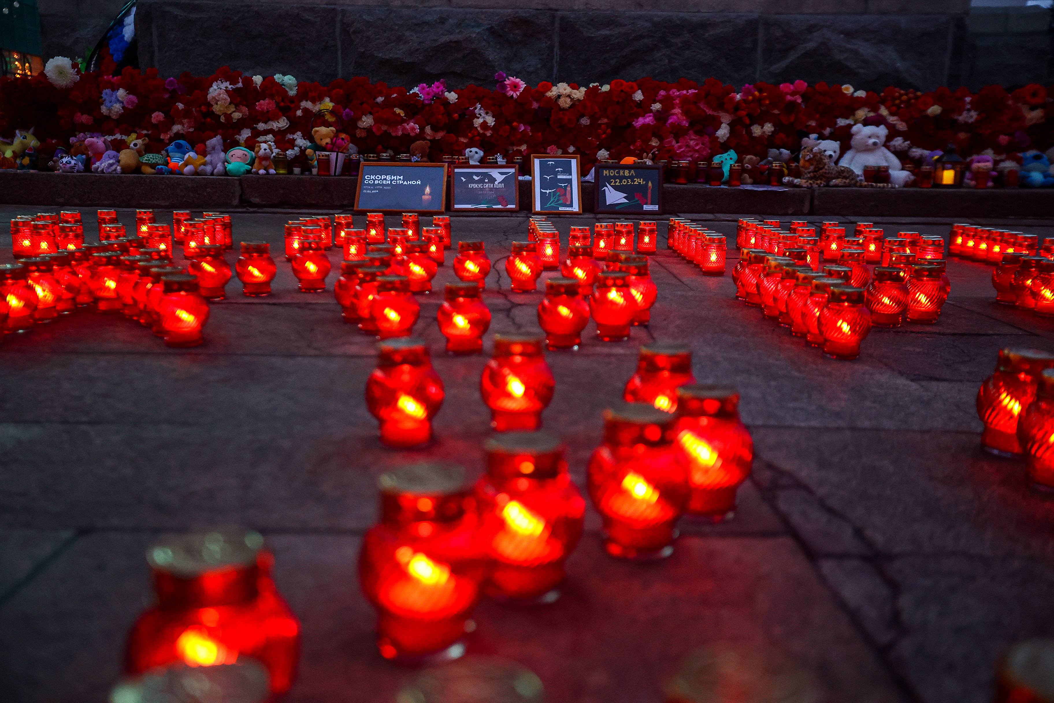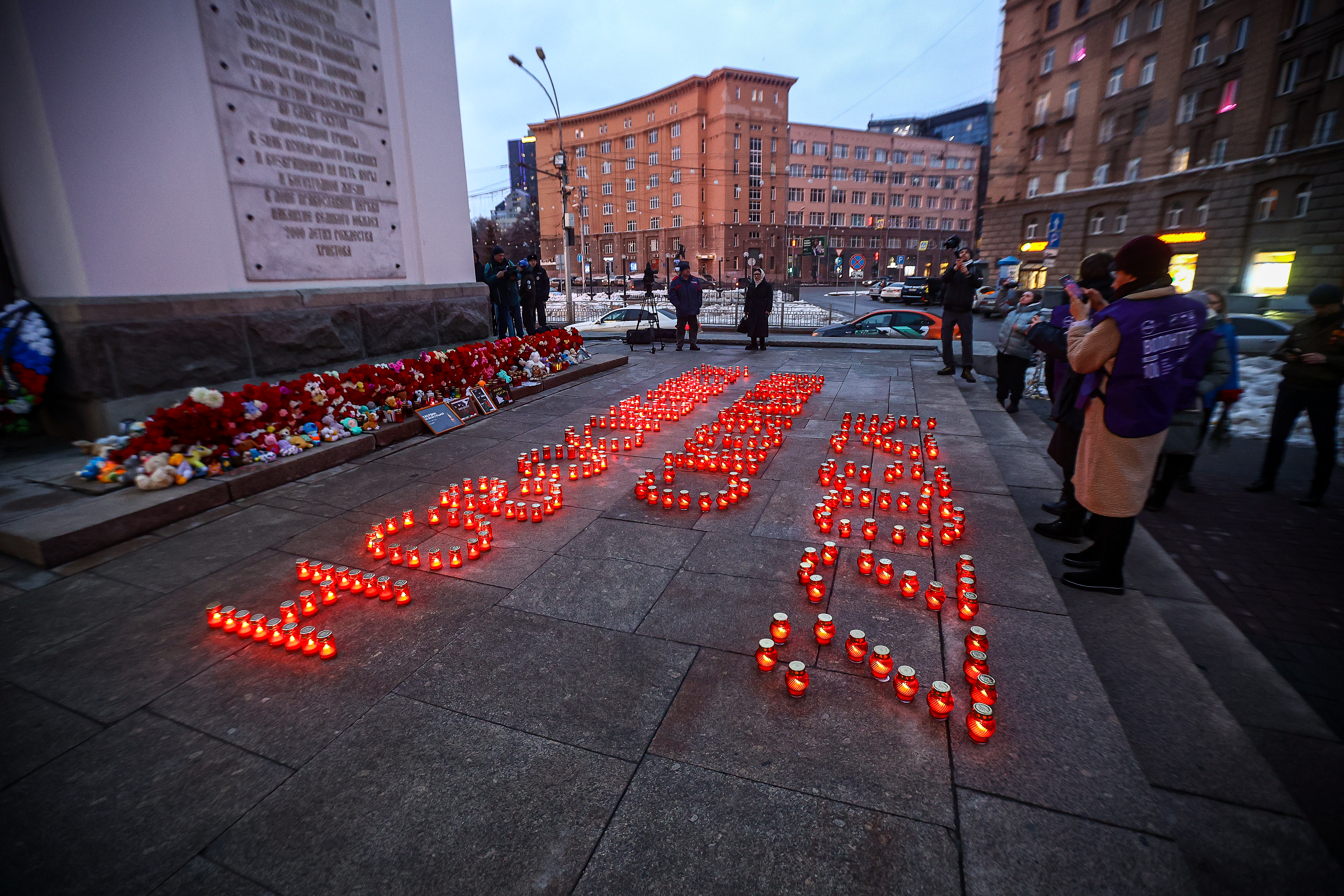 Возложение цветов продолжается. Прямо у часовни красным мерцающим пятном раскинулась составленная из свечей фраза «НОВОСИБИРСК СКОРБИМ 22.03.24». Софья Ковалёва — девушка лет 20 — медленно опускает цветы и прячет появившиеся слёзы.