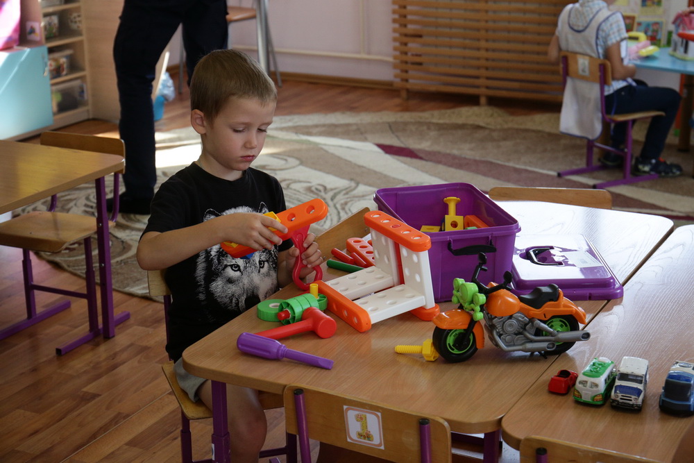 Во 2-м саду нет ребятишек только в одной группе, самой младшей, для детей от двух до трёх лет. В неё набирают новых воспитанников. Ребята постарше, которые после очень долгого перерыва вернулись в свои группы, вспоминают любимые игрушки.