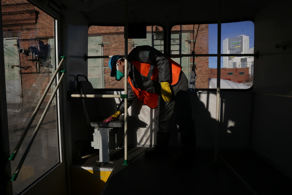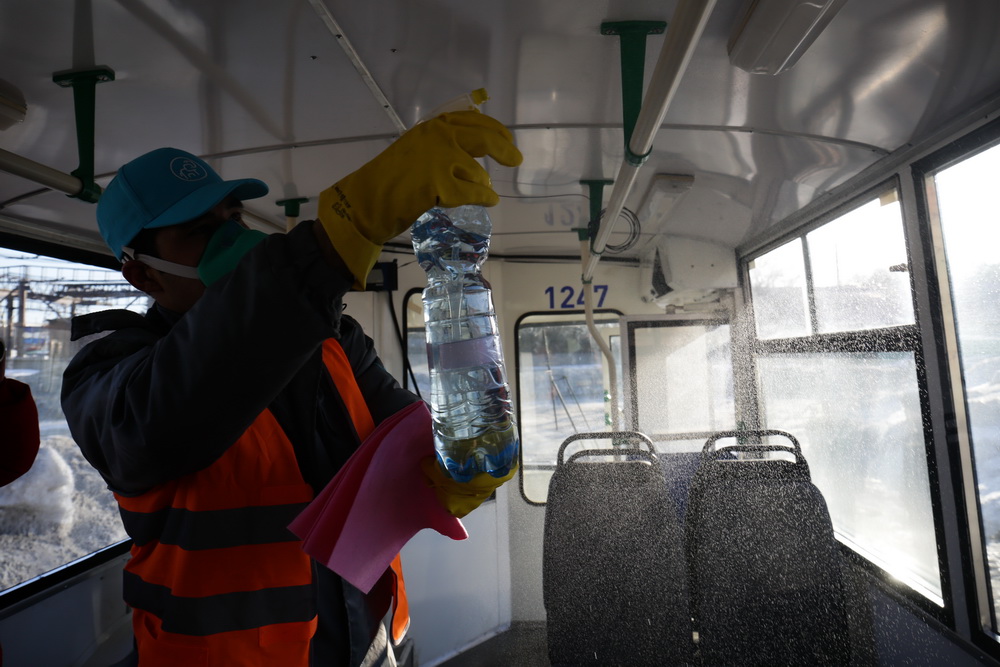 Новосибирские троллейбусы моют хлоркой для защиты от коронавируса
