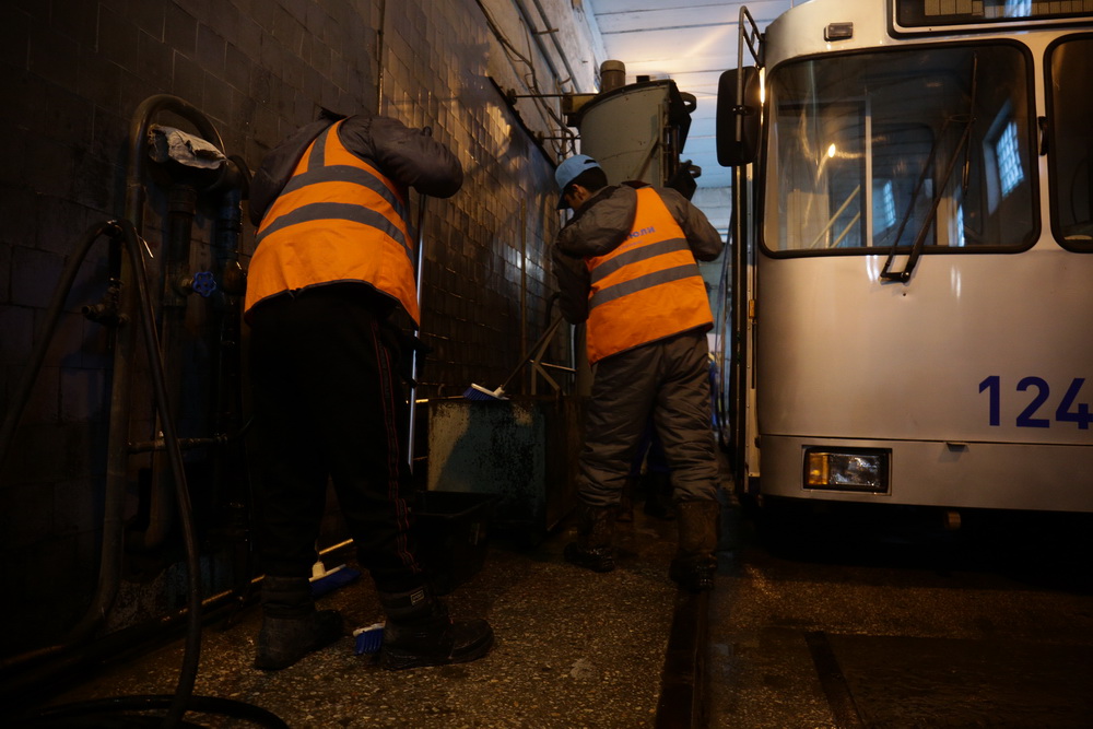 Троллейбусы в Дзержинском пассажирском предприятии теперь моют особо тщательно, после каждой смены. Автоматическая мойка наводит лоск на бортах. Сотрудники клининговой компании промывают каждую щель внутри и снаружи. Сейчас подоконникам, поручням, сиденьям — особое внимание. Коронавирус долго живёт на поверхностях. Убивают его составом с содержанием хлора. Тем не менее, в салоне резкого запаха после обработки нет. К тому же машину проветривают.