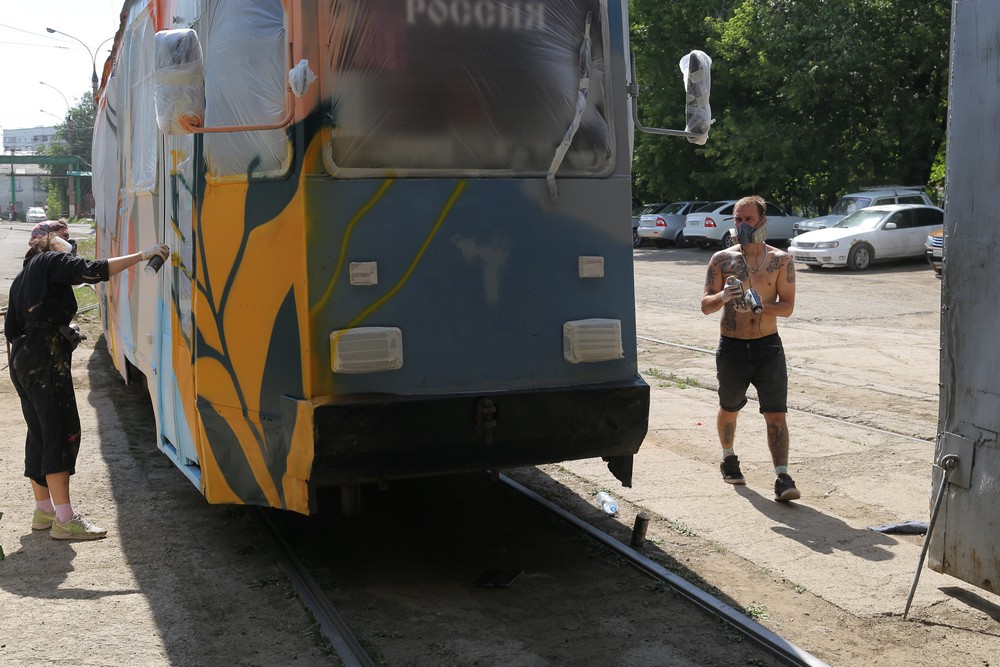 Известная художница Марина Ягода и её друзья разукрасили два трамвая 27 июня. В понедельник, 29 июня, облагороженные трамваи выйдут на линию. «Новосибирские новости» запечатлели процесс раскраски транспорта.
