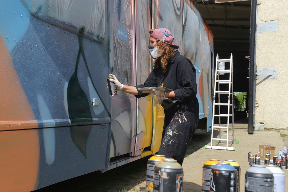 Новосибирские уличные художники раскрасили баллончиками ещё два трамвая