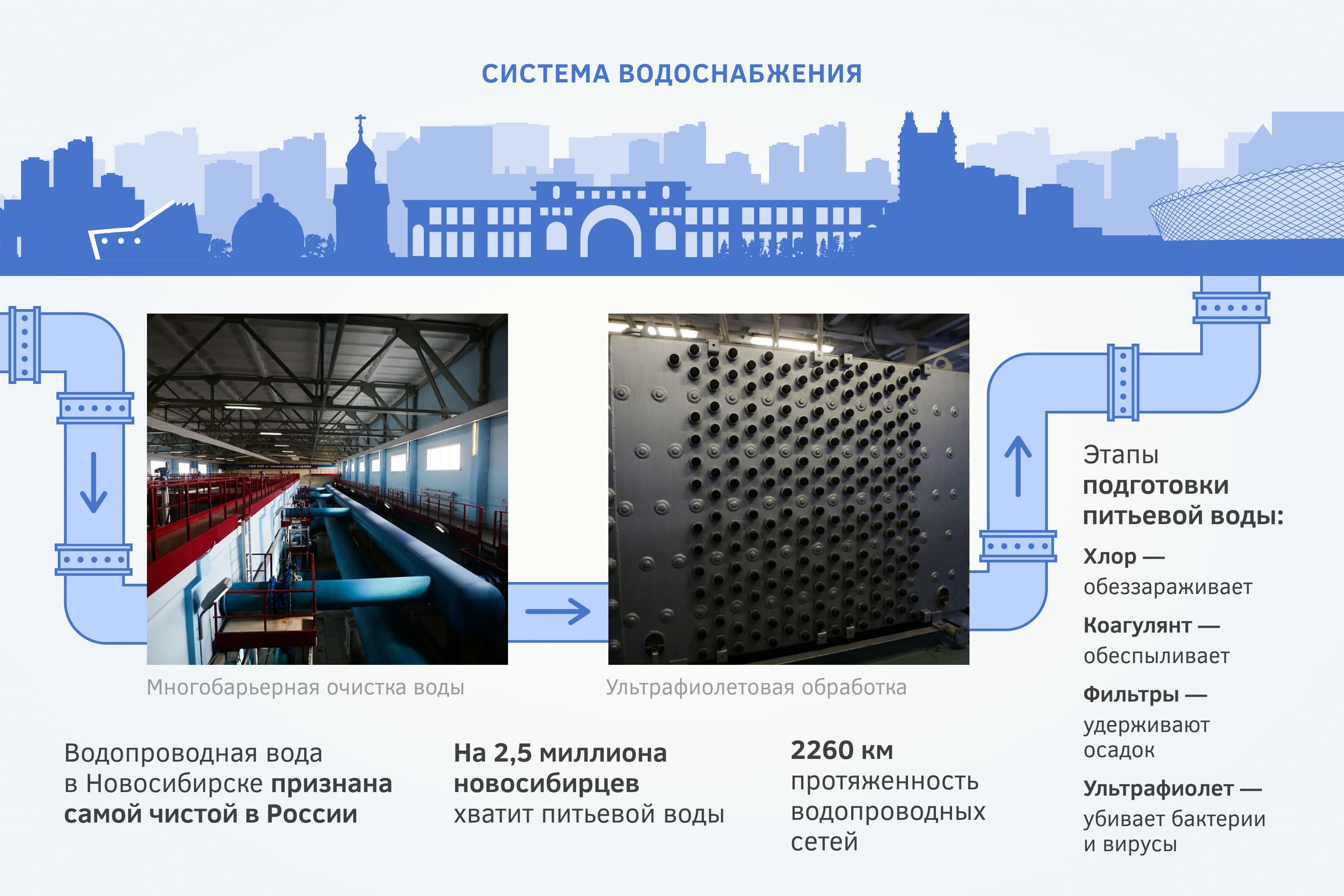 Новосибирцы пьют самую чистую в России водопроводную воду. Какой путь она проходит, прежде чем попасть из Оби к нам домой и после того как утекает в канализационные трубы? Читайте об этом в наших карточках, посвящённых 95-летию Горводоканала — одного из старейших предприятий Новосибирска.