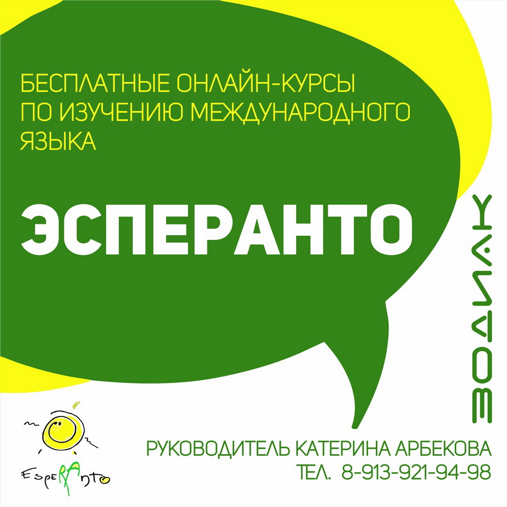 Хобби-центр «Зодиак» приглашает всех желающих на бесплатный ускоренный курс международного языка эсперанто.