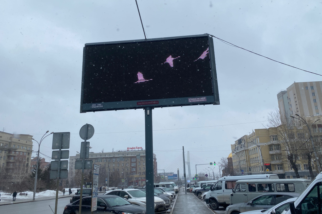 Поступают так и новосибирцы. Изображение символической стаи также начали транслировать на уличных видеоэкранах.