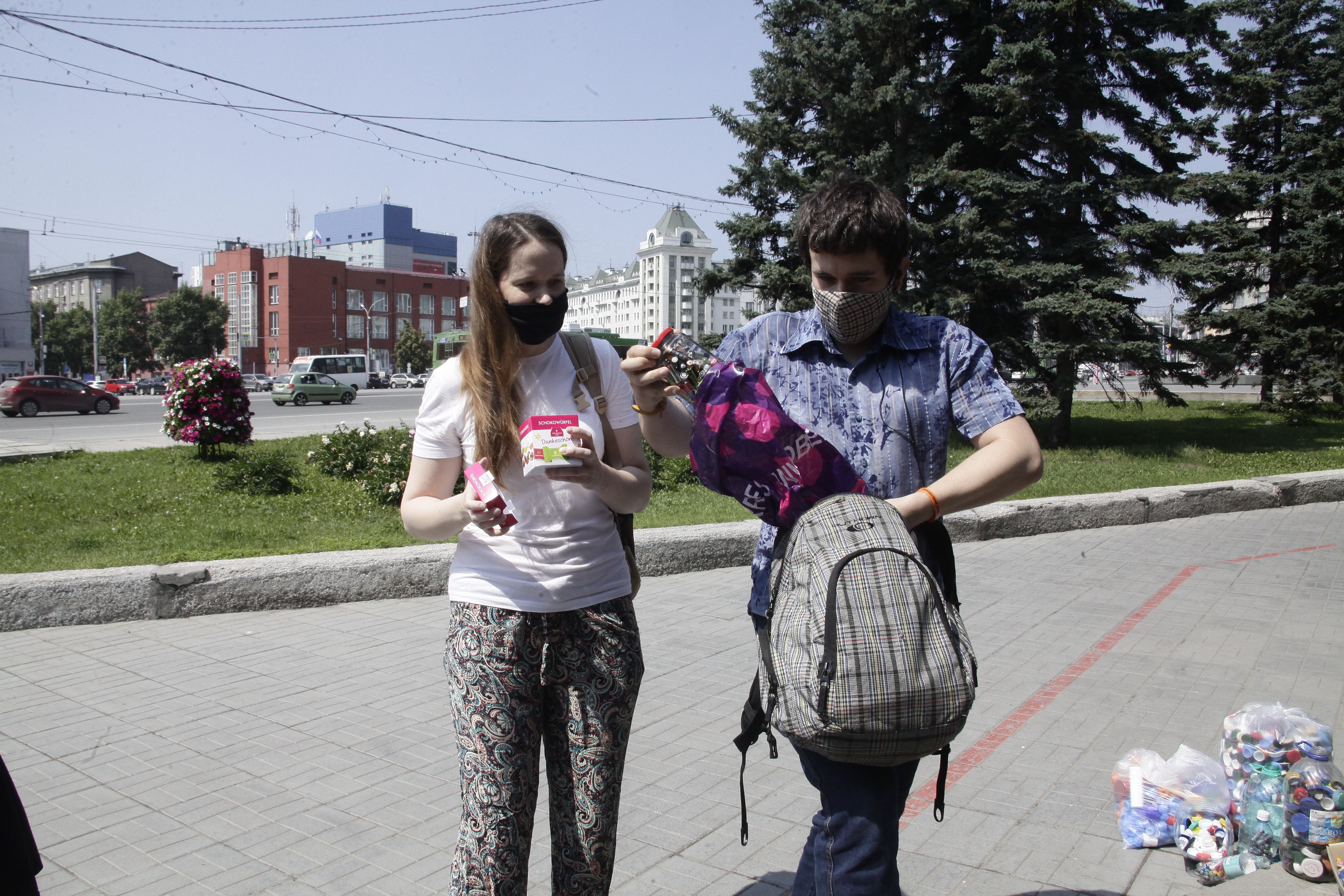 В международный день отказа от полиэтиленовых пакетов новосибирцам предложили принести вторсырьё в бумажном пакете, экосумке или вязаной авоське. Тем, кто откликнулся на этот призыв, подарили значки, ручки и силиконовые браслеты с надписью «Мы за чистый город!».