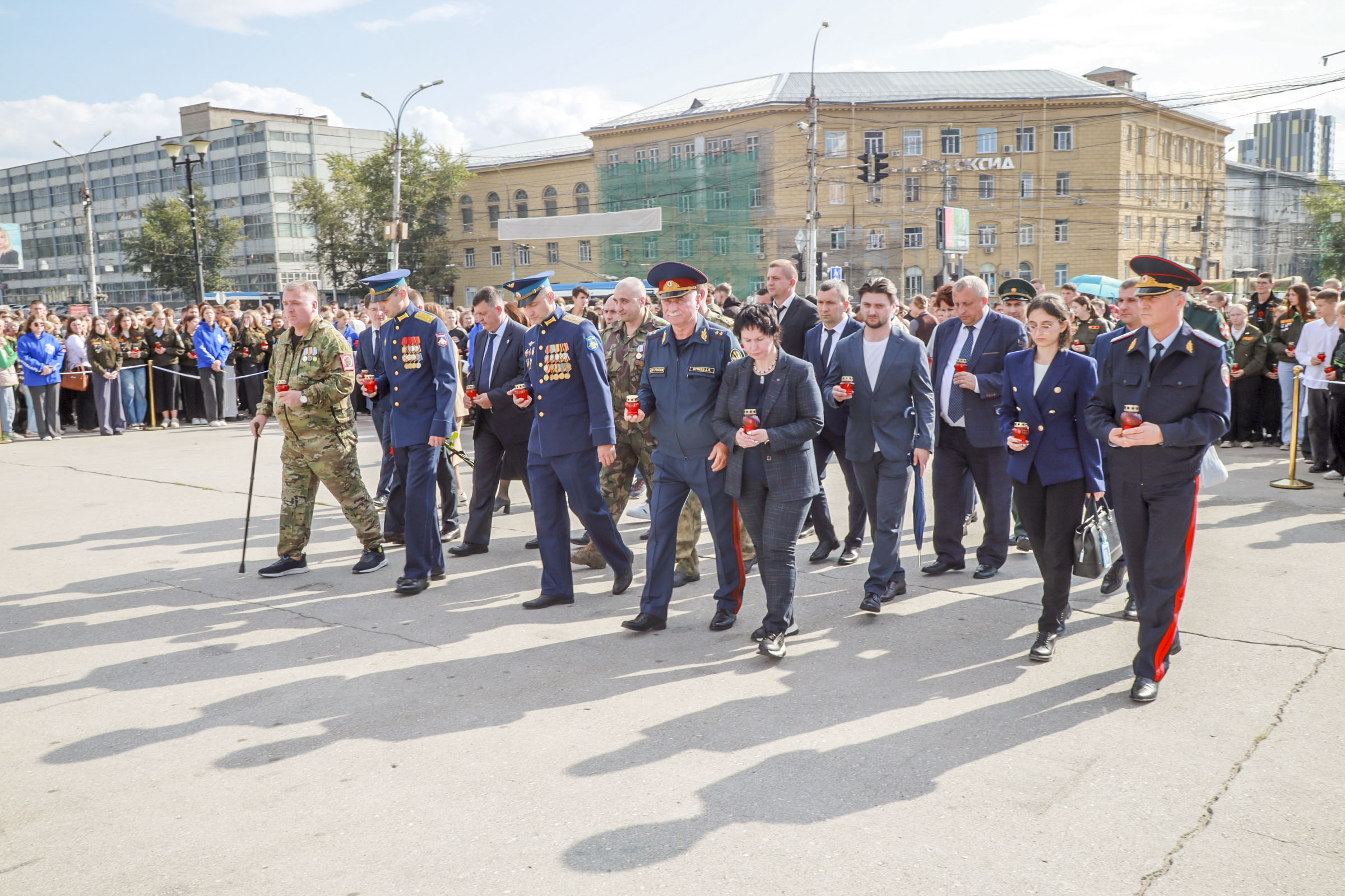3 сентября в России отмечают День солидарности в борьбе с терроризмом. На площади Пименова собрались школьники, студенты, курсанты, ветераны военной службы, участники проекта «Герои НовоСибири» и жители Новосибирска. В знак скорби о погибших зажгли десятки свечей. Память жертв всех терактов почтили минутой молчания.