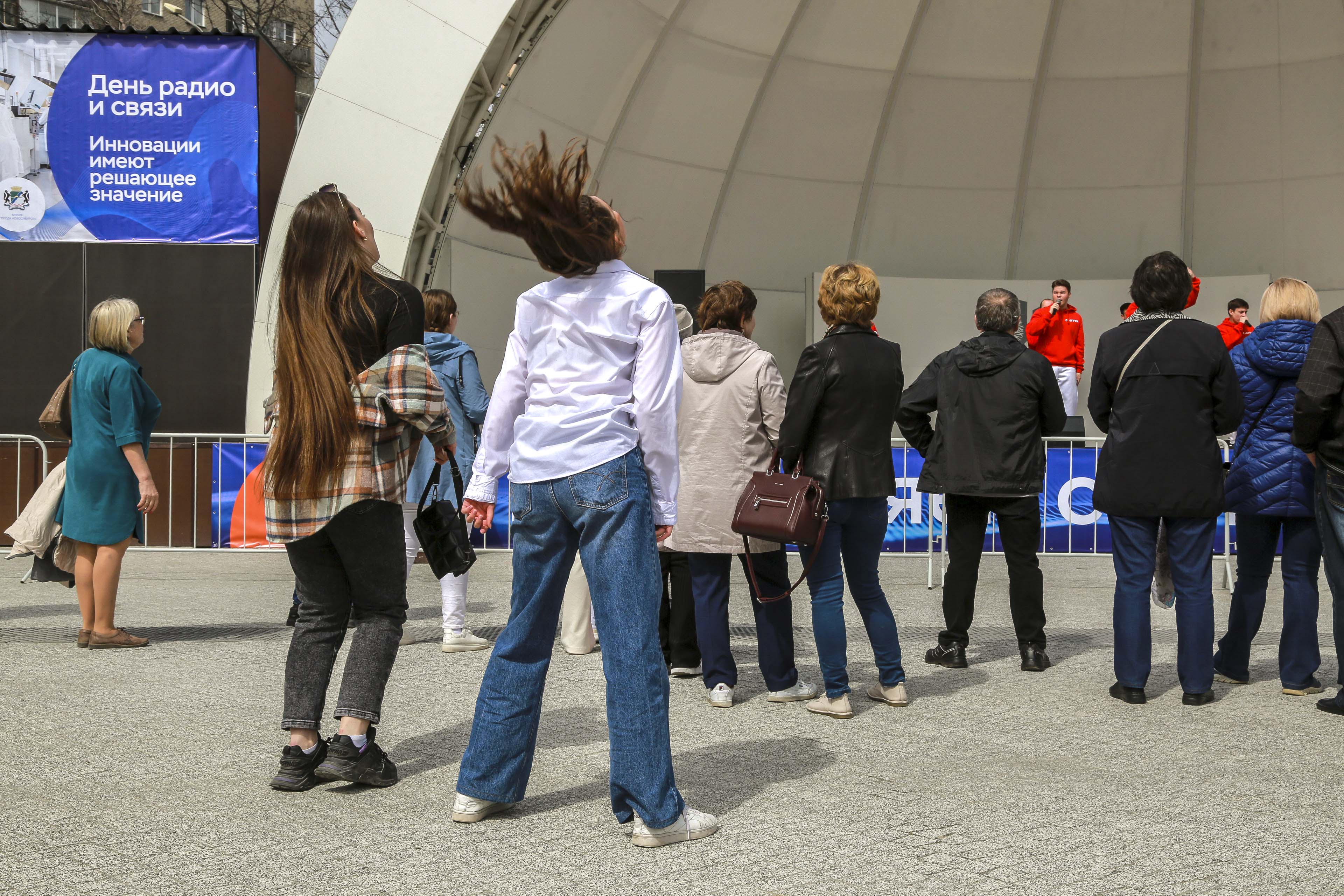 Новосибирск отмечает День радио. Приуроченную к этому празднику развлекательную программу развернули сегодня, 5 мая, в Центральном парке.