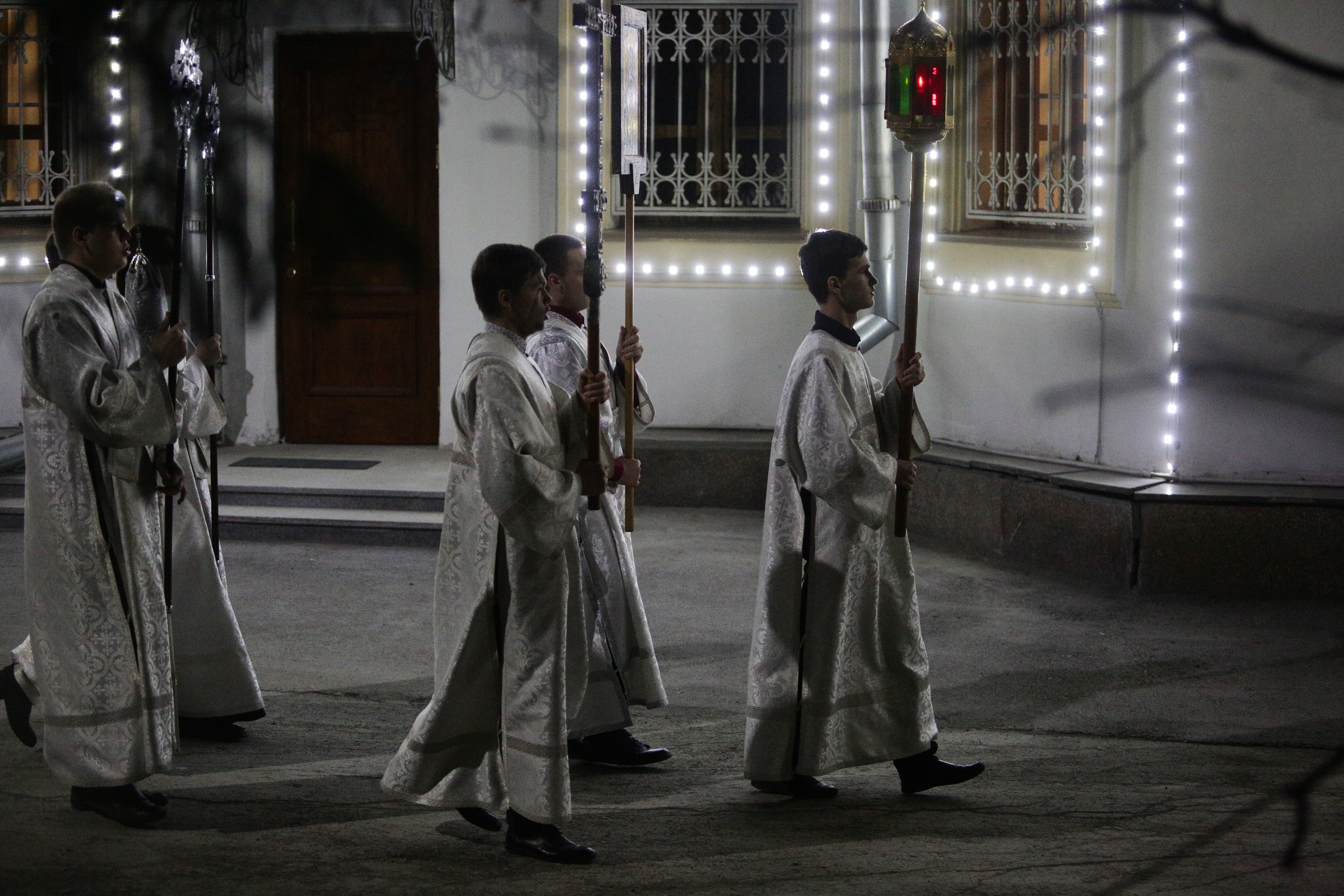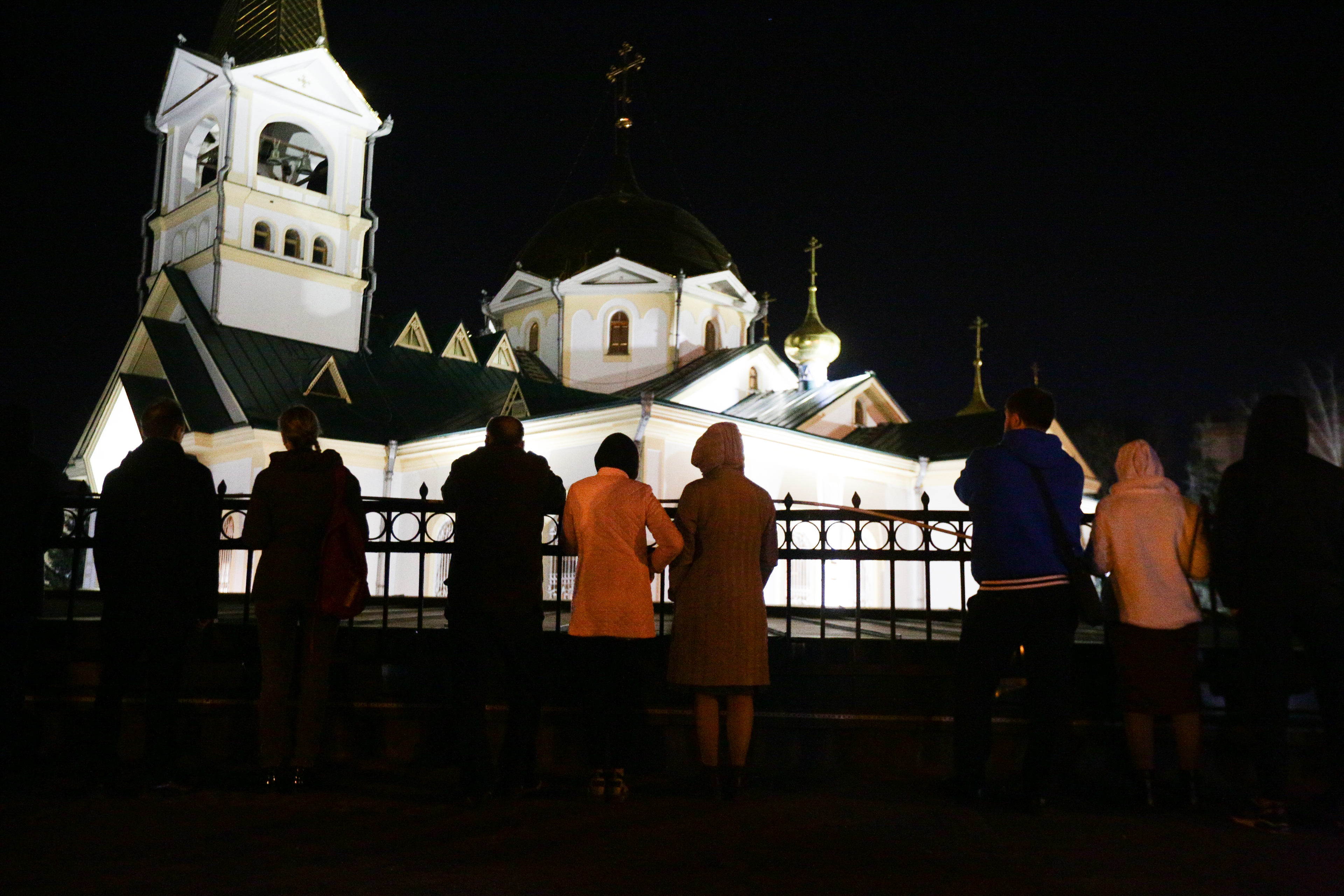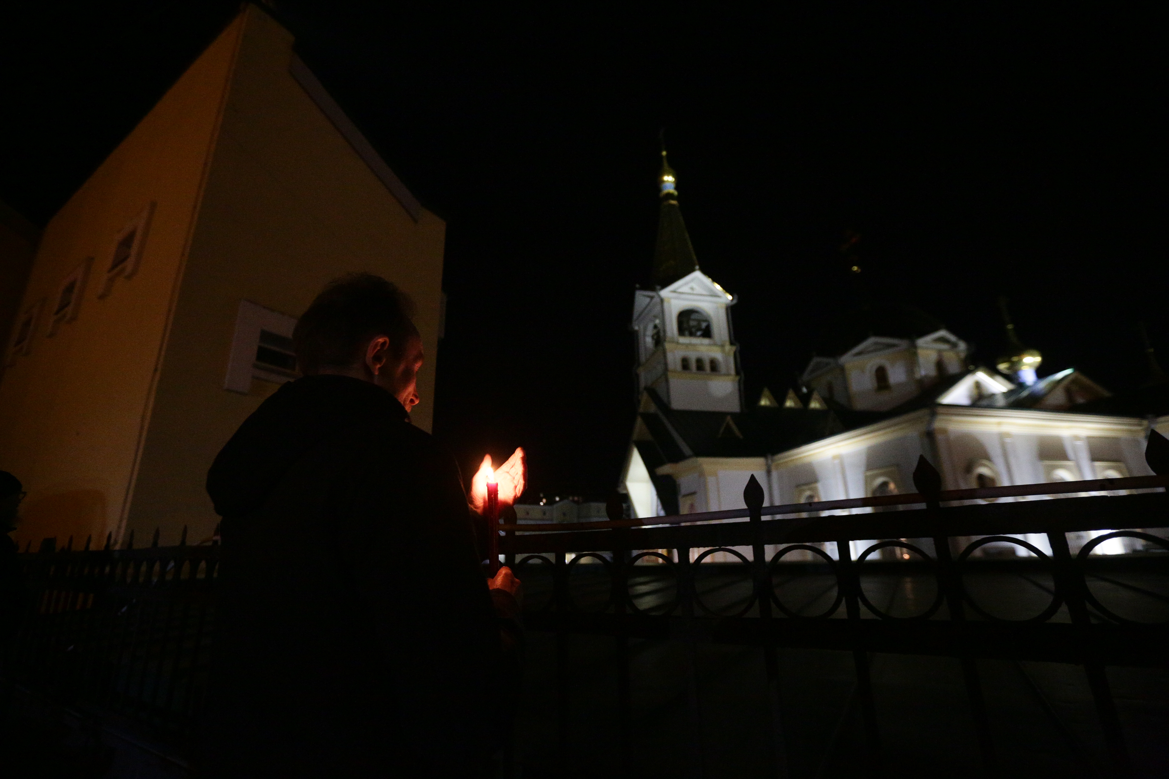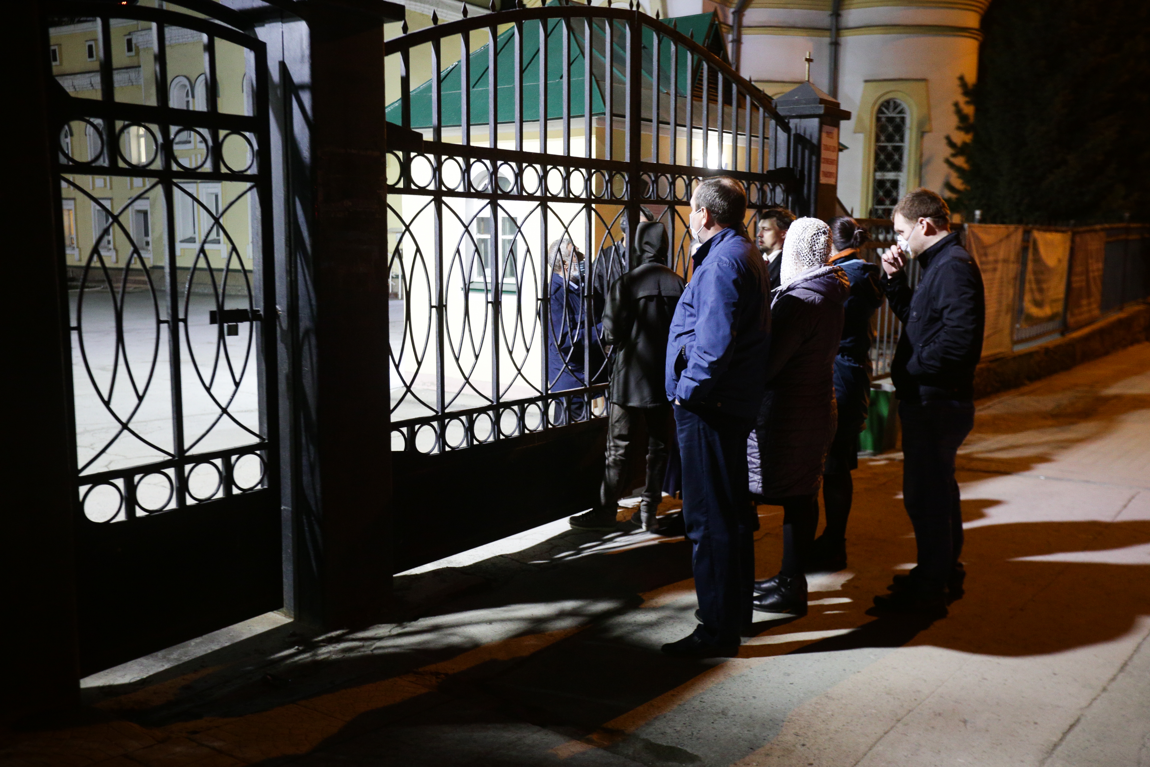 Тем не менее не все верующие в эту праздничную ночь смогли усидеть дома перед телевизорами и ноутбуками. Некоторые пришли к главному храму митрополии, зажгли свечи и встречали Пасху у запертых ворот.