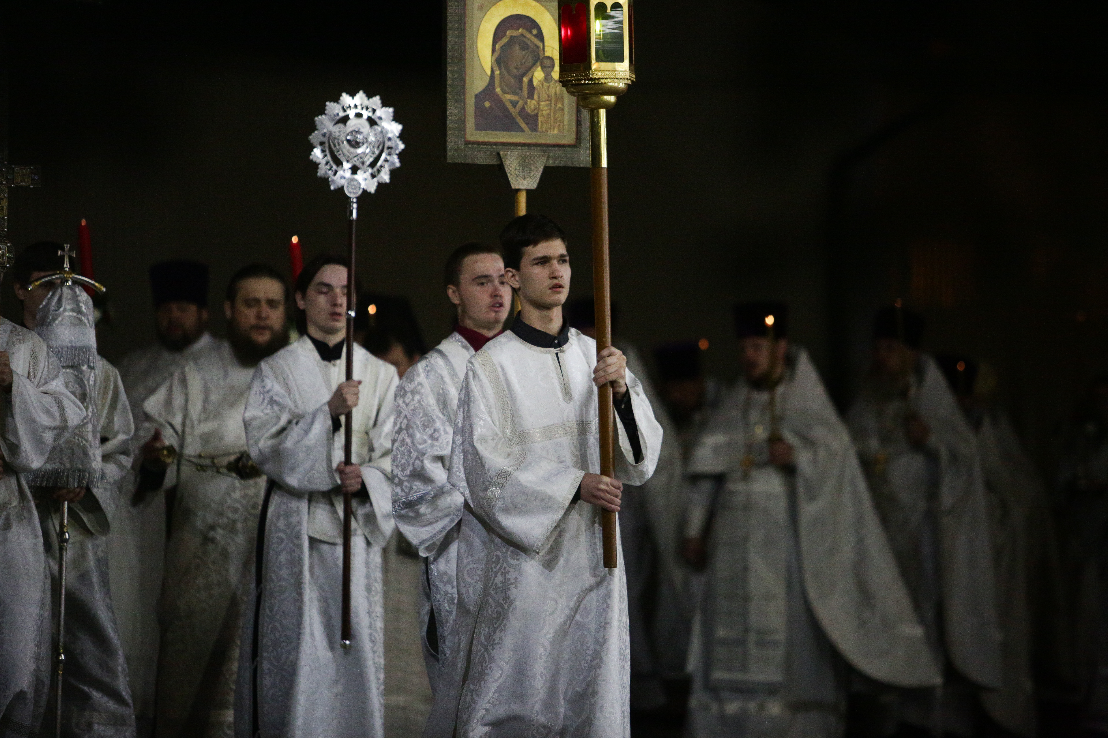 Из-за угрозы распространения коронавируса храмы закрыли для массовых посещений. Возле территорий выставили наряды полиции. Но поприсутствовать на ночном пасхальном богослужении новосибирцы могли дистанционно: трансляцию из Вознесенского кафедрального собора сегодня вели телеканалы ОТС и «Союз».