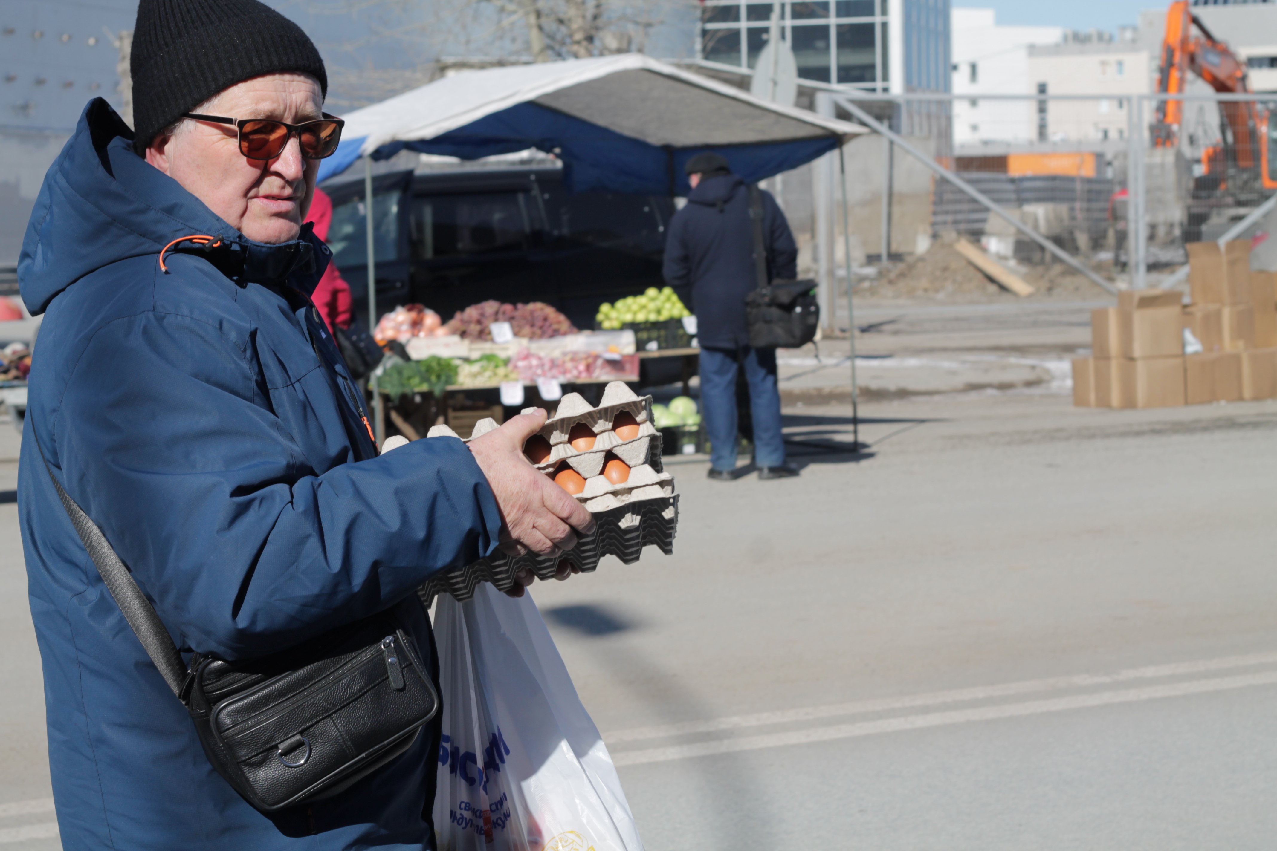 Впервые в этом году торговые ряды развернули на площади Карла Маркса. Распродажу товаров по ценам производителей устроили в преддверии пасхальных торжеств. На прилавках — фермерские молоко, яйца, за которыми выстроилась целая очередь, и другие продукты для семейного обеда: свежее мясо, рыбные деликатесы, грибы, ягоды.