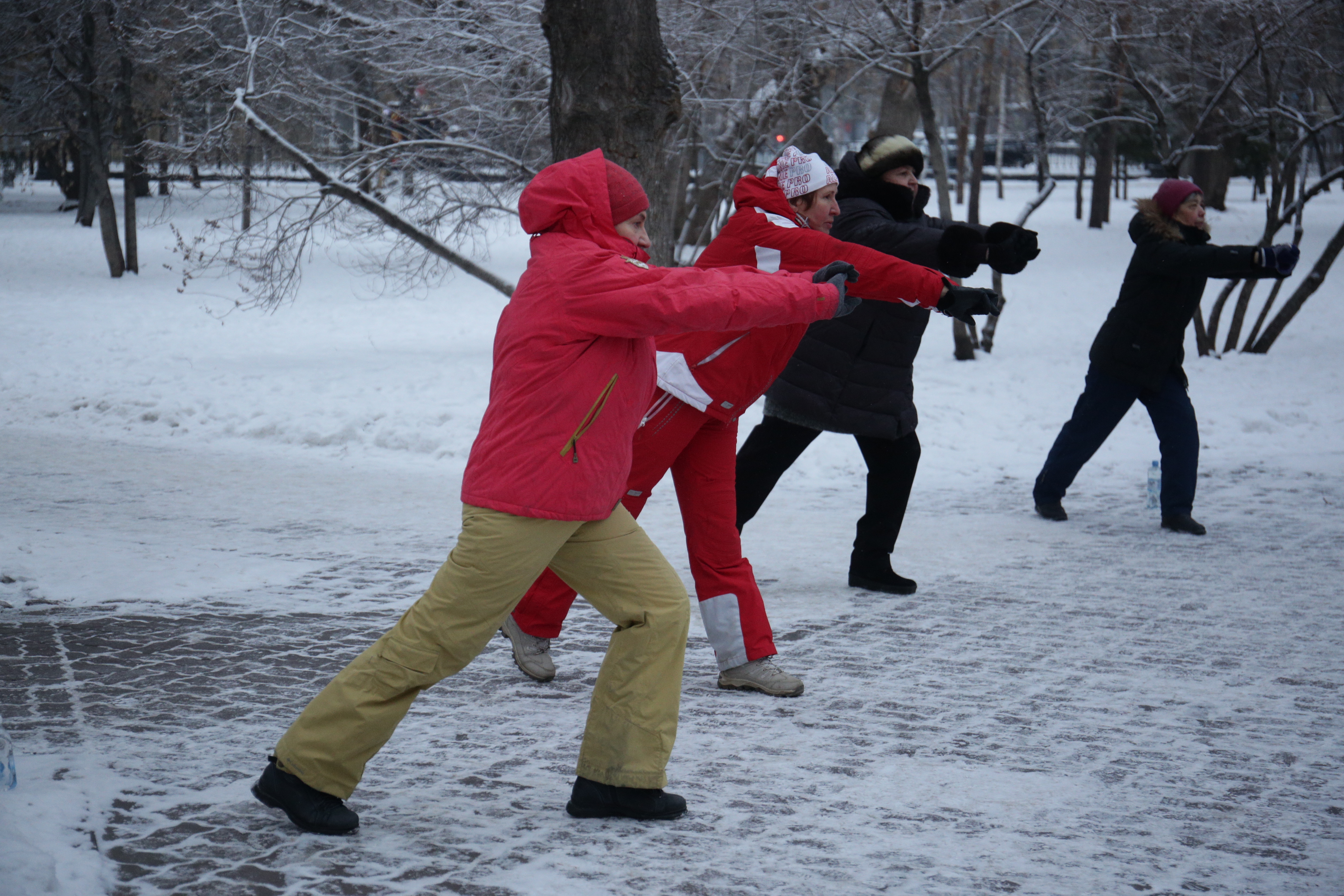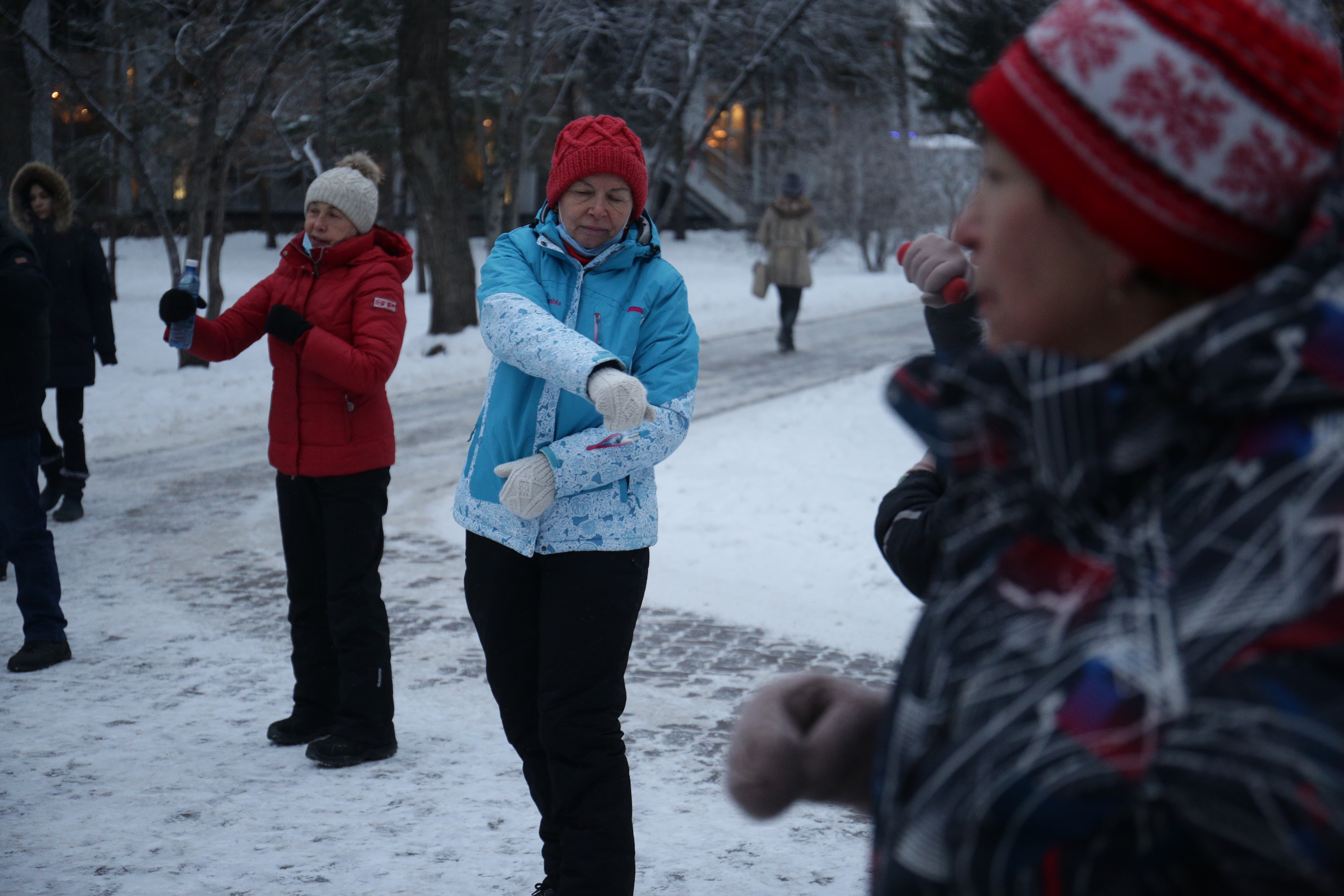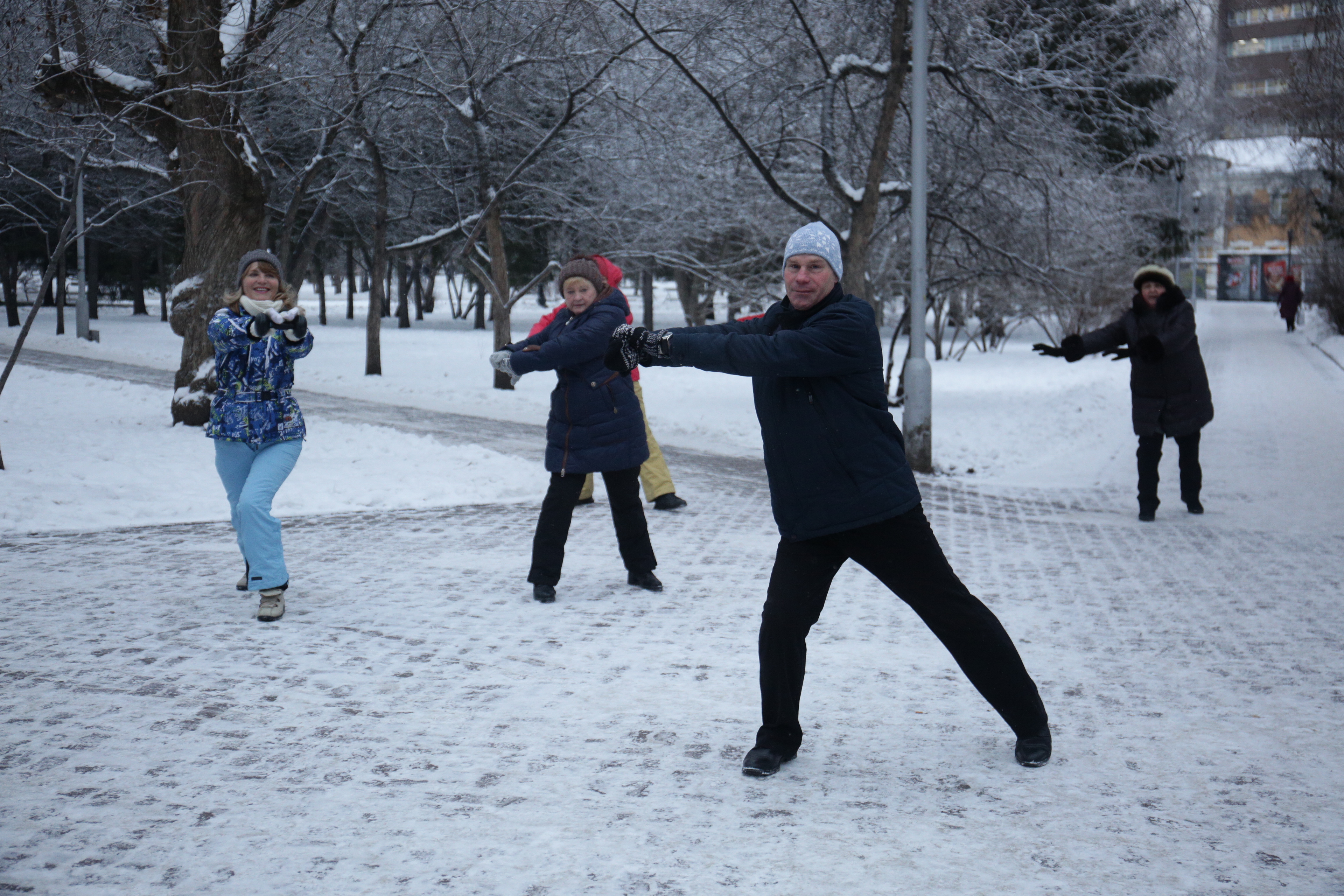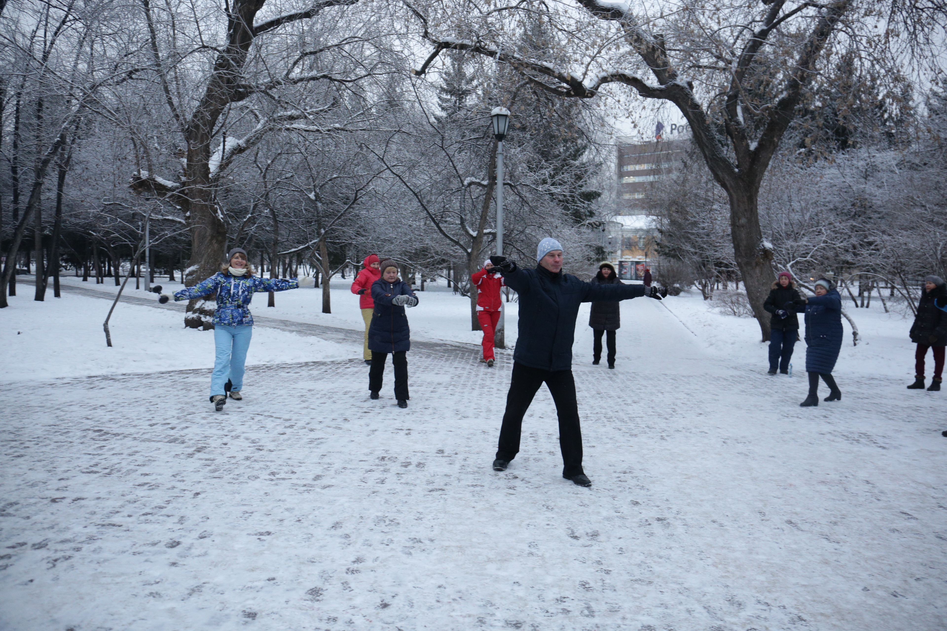 Сезон зимней парковой гимнастики открыли 25 ноября в Новосибирске. Занятия проходят в центре города, в Первомайском сквере. Ведёт их автор оздоровительного комплекса упражнений Владимир Ефремов.
