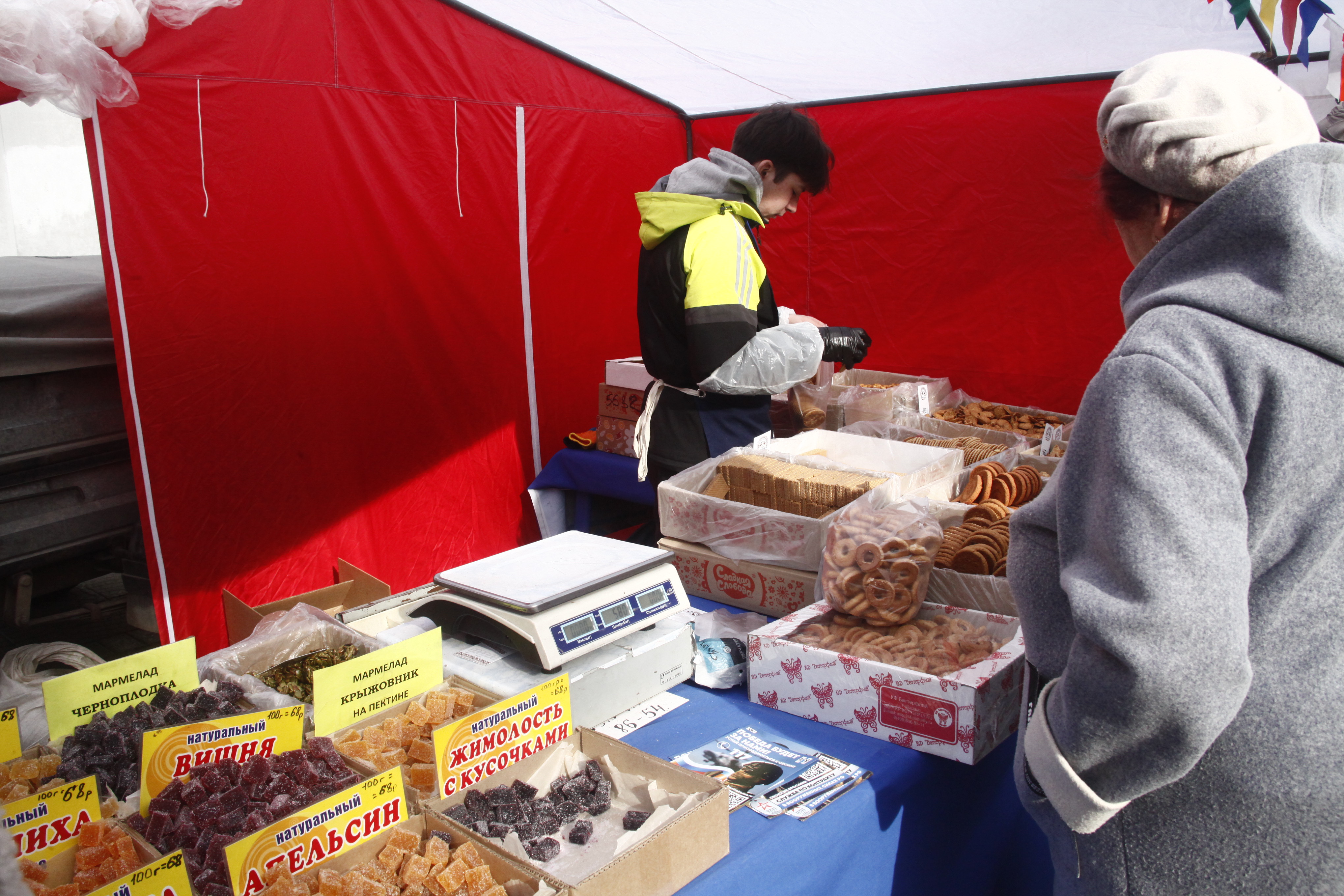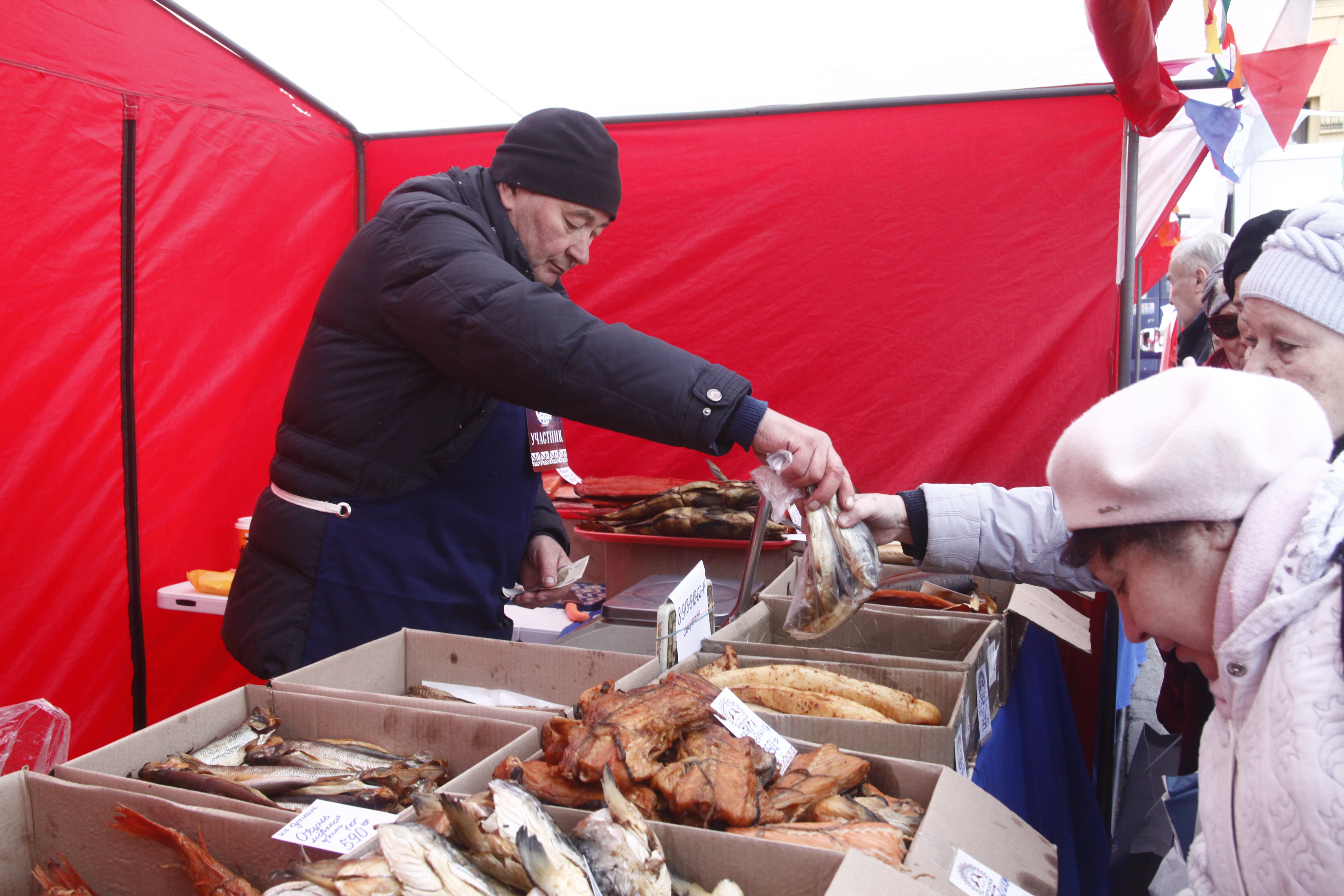 Выбор на прилавках большой, цены привлекательные, а потому уже в полдень тут многолюдно.