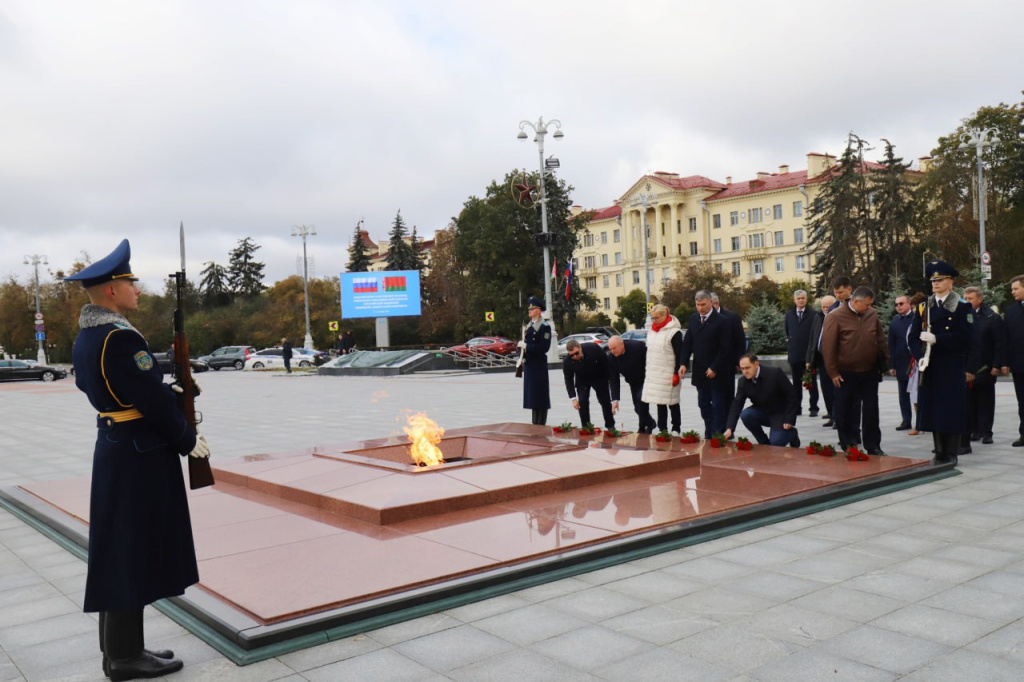 Представители Новосибирска возлагают цветы к Монументу Победы в Минске. Фото: nso.ru