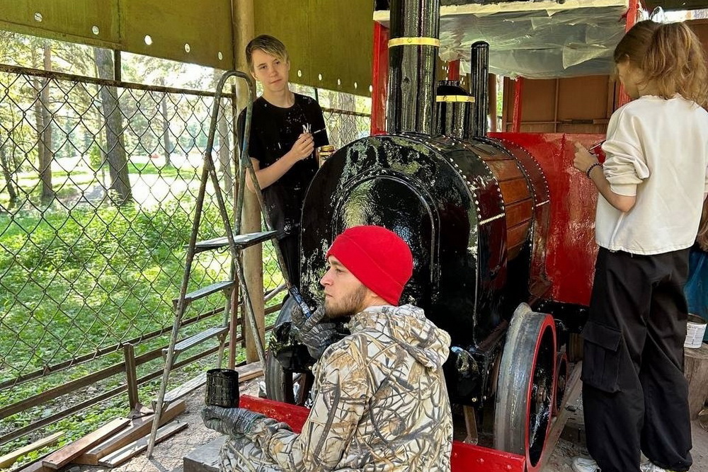 Буквально за три дня волонтёрам удалось собрать через соцсети 25 тысяч рублей на материалы для реставрации детского аттракциона. В минувшие выходные команда занималась покраской паровозика с вагончиками.