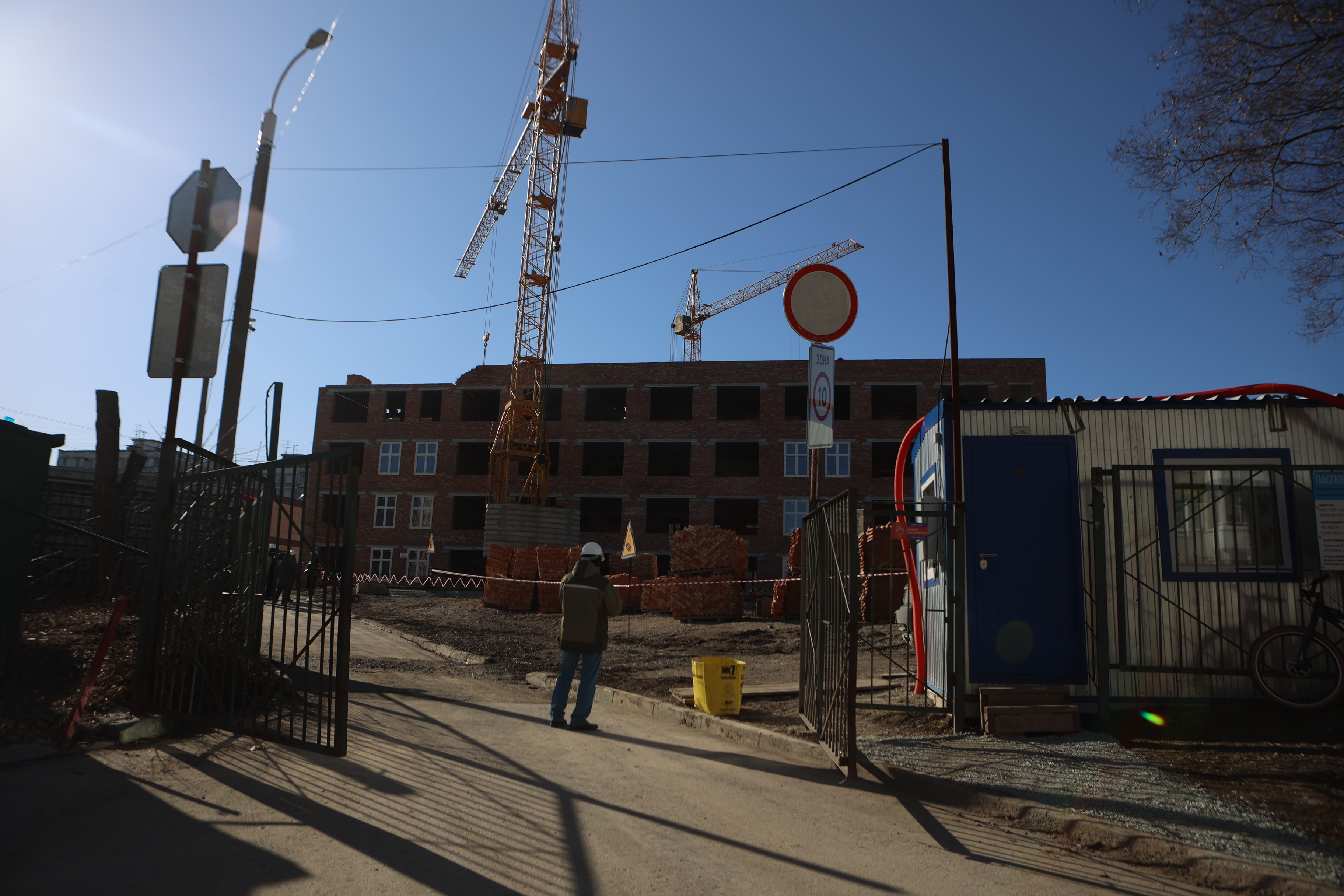 Сейчас подрядчик возводит каркас здания, наружные и внутренние стены и перекрытия третьего этажа. Готовность корпуса оценивают в 20%.