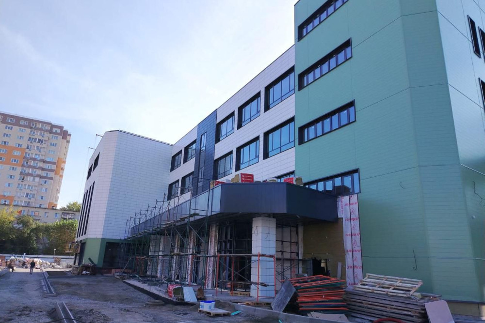 Сейчас завершают фасад, остекление и кровлю. Параллельно прокладывают внутренние инженерные коммуникации, отделывают помещения и монтируют сети связи.