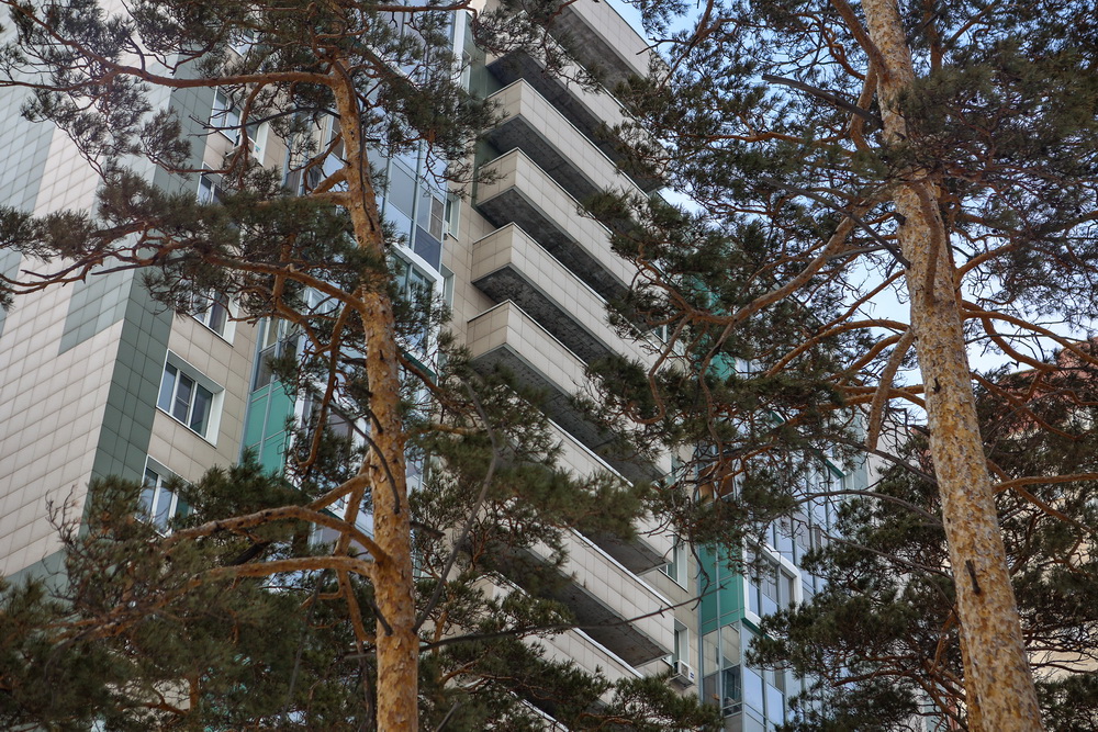 «Сосны» — это три корпуса высотой в 17, 18 и 25 этажей. Первую очередь возвела компания «НН-Строй», вторую — «СМУ-99», а третью — «БОВИ». Все застройщики входят в группу компаний «Ново-Николаевскъ» — старейшее в городе агентство недвижимости. Первый дом сдали в 2014-м, второй — спустя два года, третий — в 2020 году.