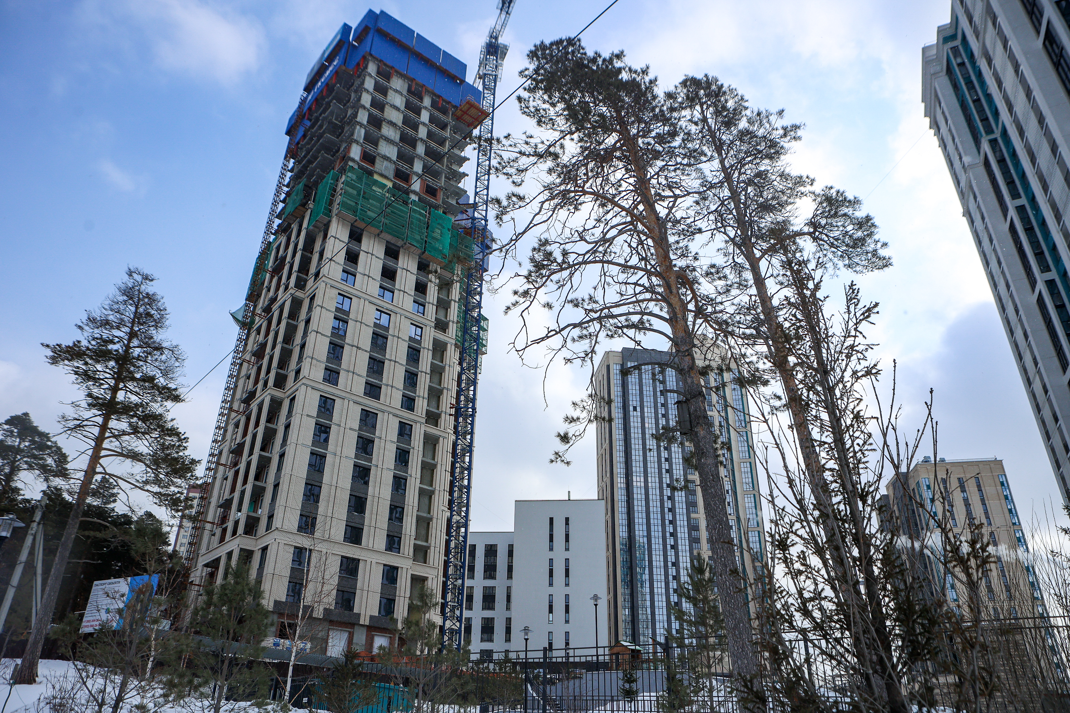 Высотный микрорайон сформировали три жилых комплекса: «На Сухарной», «Сосны», «Бирюзовая жемчужина». Ближе к реке полным ходом идёт строительство ЖК «Страна.Береговая».