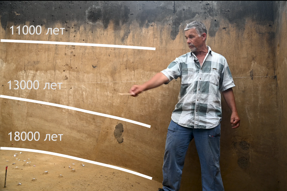 Василий Зенин на раскопках Волчьей Гривы. Скриншот: фильм «Археология Новосибирской области», созданный Институтом археологии и этнографии СО РАН