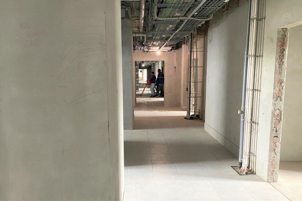 В левобережной поликлинике №22 на улице Бородина обустраивают бытовую канализацию, возводят внутренние перегородки, делают полусухую стяжку полов, монтируют воздуховод и готовятся к установке вентиляционного оборудования. Готовность этого объекта оценивают в 40%. В пятиэтажном здании общей площадью почти 13 тысяч кв. метров смогут получать медицинские услуги 60 тысяч пациентов. Проектная мощность поликлиники — 907 посещений в смену.