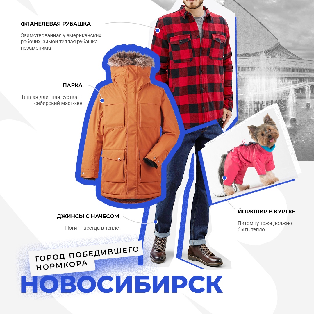 Новосибирцы любят носить джинсы с начёсом и фланелевые рубашки. Девушки-сибирячки питают особую любовь к мотоциклетным курткам, а для своих собак выбирают модные пуховики. В AliExpress изучили запросы пользователей из российских городов и составили портрет жителей по их предпочтениям в одежде. Смотрите — какие образы получились в итоге.