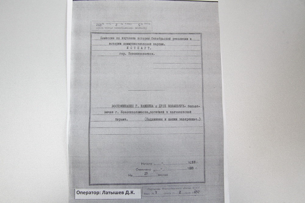 Александр Мироненко: По поводу могилы пока новостей нет. Могилу на протяжении нескольких лет искала вся семья Дуси. Её сестра и дочь даже ездили в Омск в попытках отыскать следы матери. Когда выяснилась вся эта история с поляком — что большевиков погубили где-то в районе мясокомбината, в стороне Заельцовского бора, Шамшин и Ковальчук искали могилы своих родственников, но таковых так и не нашли. Хотя были известны места некоторых захоронений погибших в контрразведках и в тюрьмах. Но точное место их захоронения так и не было установлено.
