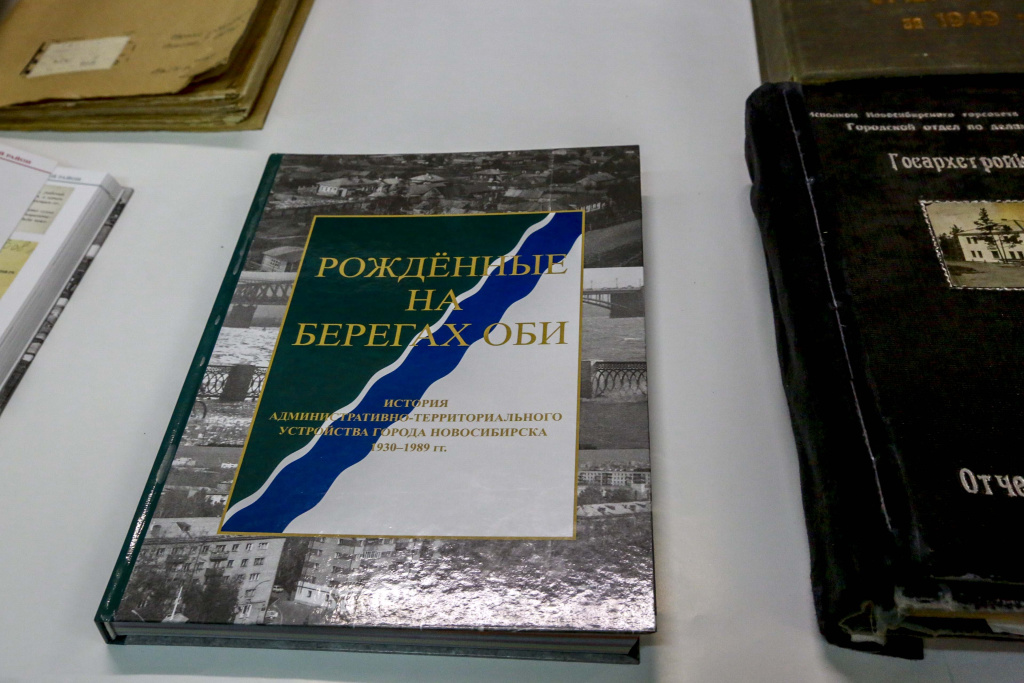Евгений Ларин: Перед нами лежит роскошное иллюстрированное издание большого формата. Это книга, которую недавно выпустил в свет Новосибирский городской архив. Называется она «Рождённые на берегах Оби. История административно-территориального устройства города Новосибирска. 1930 — 1989 гг.».