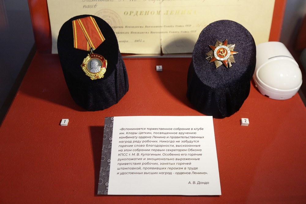Несколько лет назад музей „Сибсельмаша“ передал нам мемориальные предметы, мы долго думали, как их показать и рассказать о них, — и о производственных процессах, и о культурной жизни трудящихся. В результате родился выставочный проект „Сибирь индустриальная“, который состоит из двух выставок — „Маленькие истории большого завода“ и „От станка к сцене“.