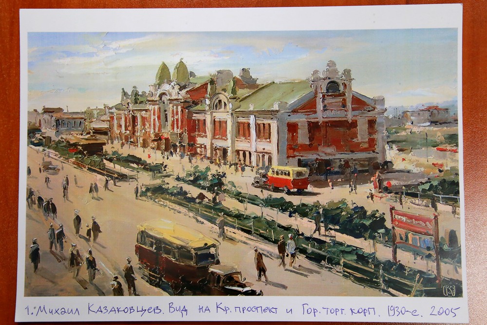 Владимир Курилов: Да, оно было символом Ново-Николаевска. Художников в то время не было, но были фотографы, здание очень много фотографировали, издавалось много наборов открыток с видами Ново-Николаевска, в том числе и те, что издавал известный общественный деятель Литвинов. Центральное место на этих открытках занимал Городской торговый корпус. Эти открытки сыграли потом большую роль в изобразительном творчестве новосибирских художников.