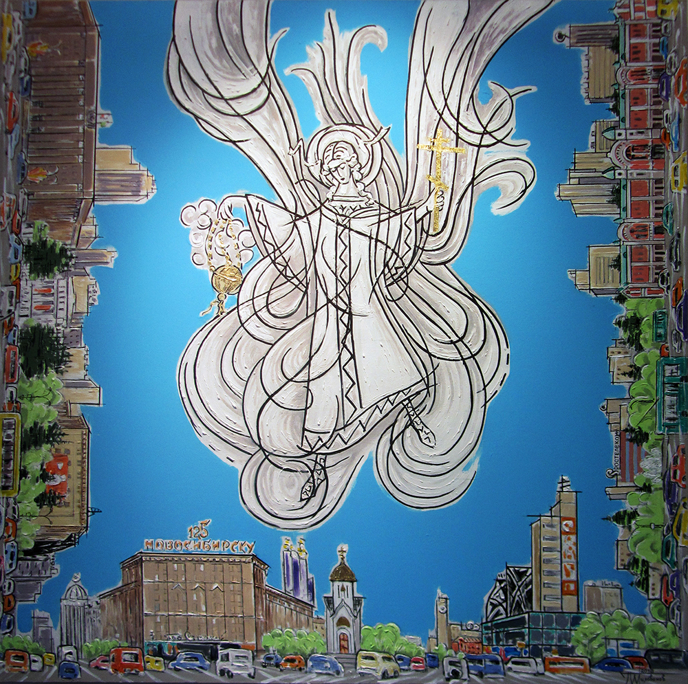 Картина Петра Милованова «В небе над Красным проспектом». Фото: Дарья Гаркуша, НГУАДИ