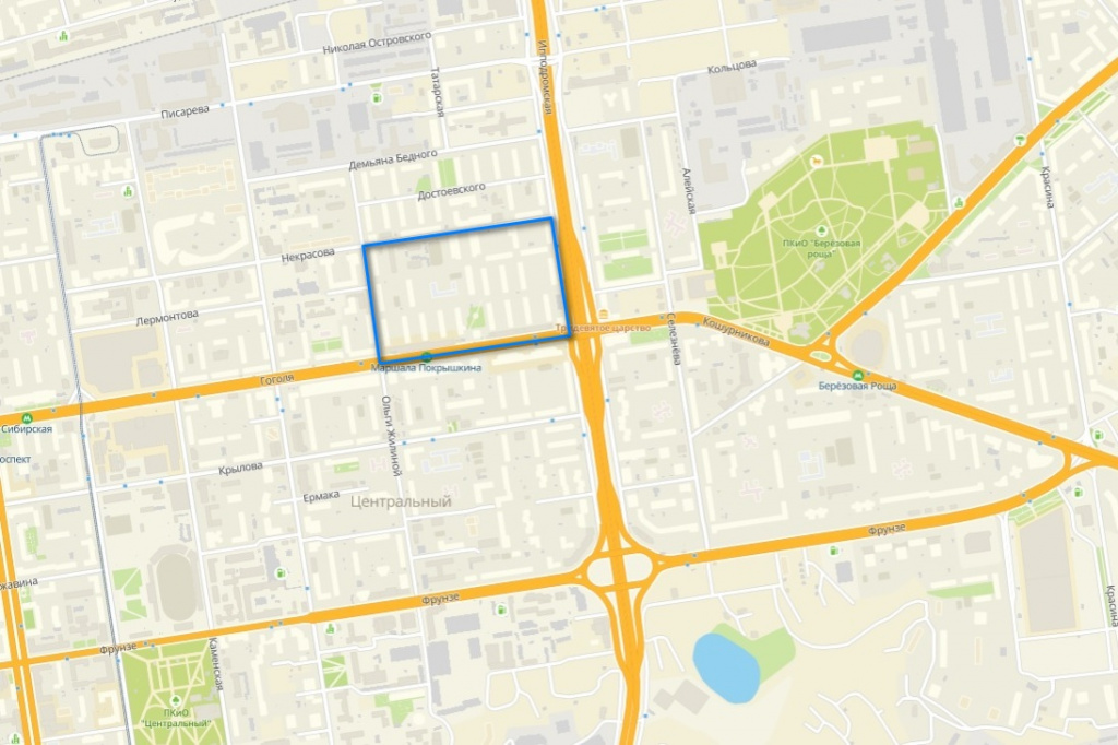 А Ипподоромский рынок на карте находится рядом со спортпощадкой — это будущий стадион «Спартак» — и Центральным садом. И всё это — территория бывшего кладбища.